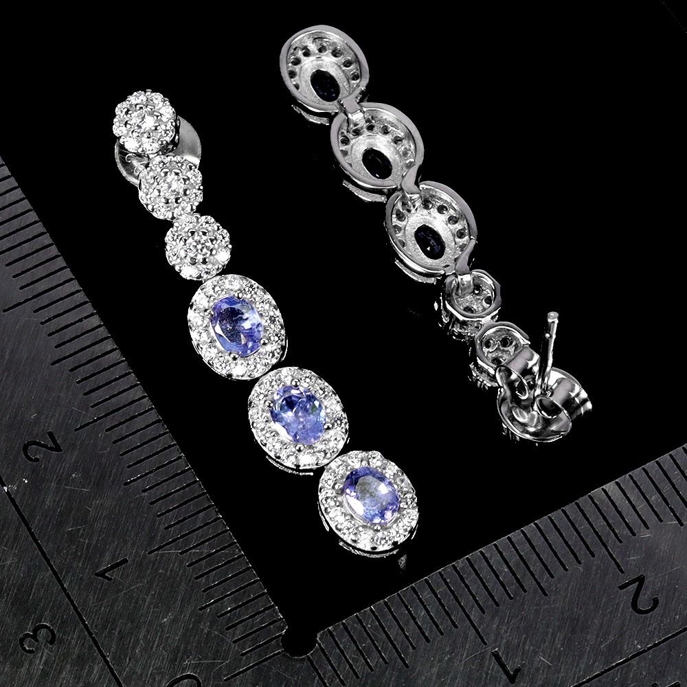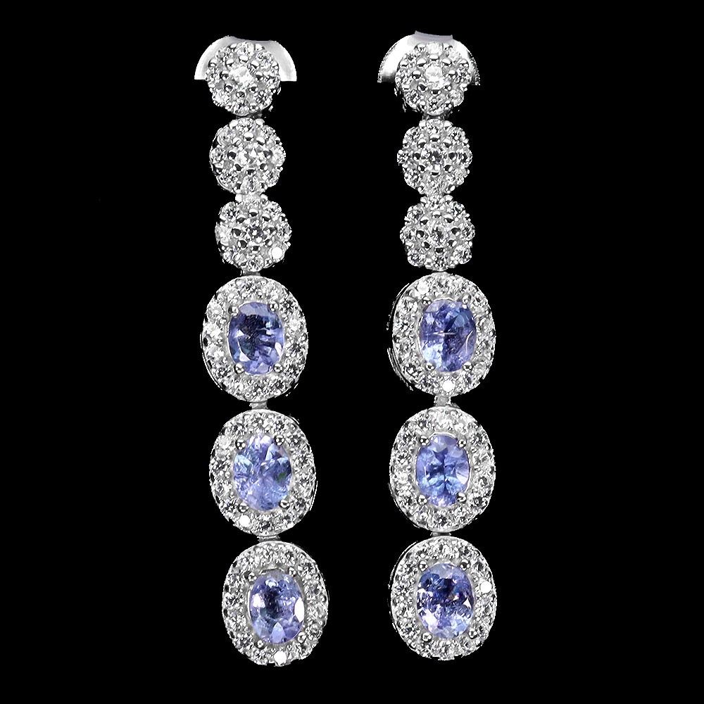 TANZANITE EARRINGS IN 14K WHITE PLATED GOLD OVER 925 STERLING SILVER - APPRAISED REPLACEMENT VALUE