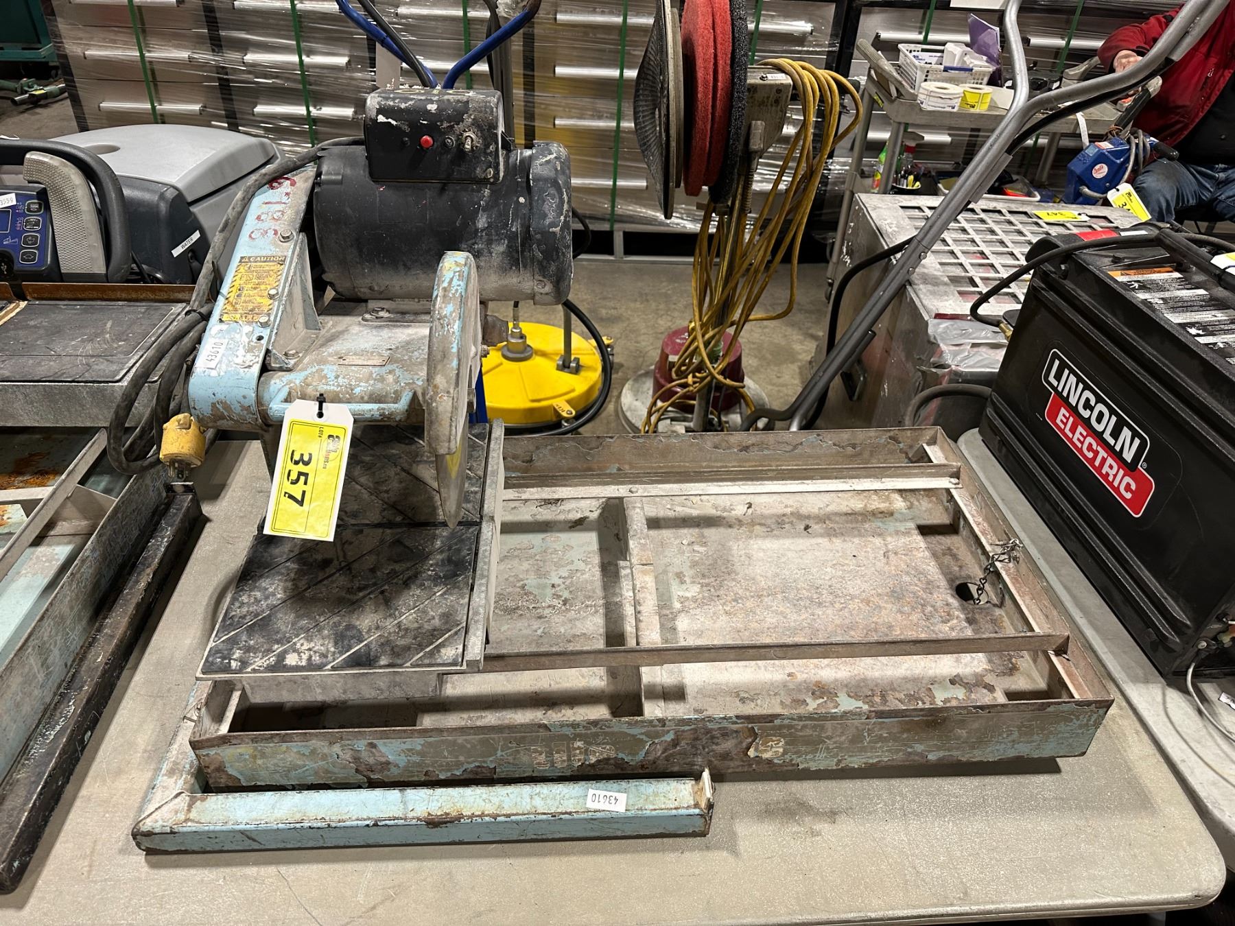 TARGET LIGHT GREEN ELECTRIC TA10100 TILE CUTTER ( HAS ONE INSTALLED BLADE & STAND )
