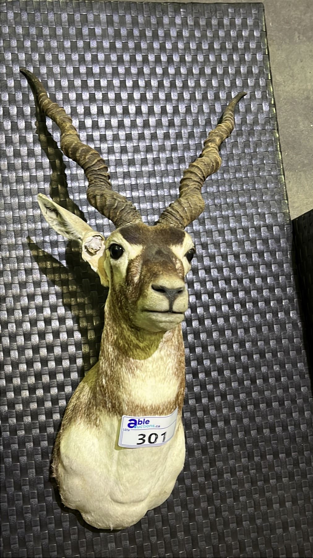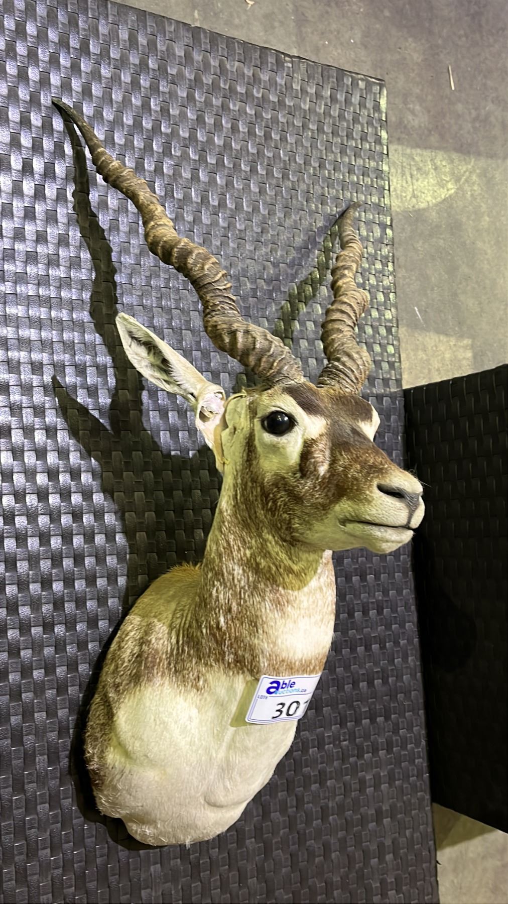 TAXIDERMY BLACKBUCK ANTELOPE HEAD - 21" FROM BASE TO NOSE & ANTLERS ARE 16"W AT WIDEST POINT
