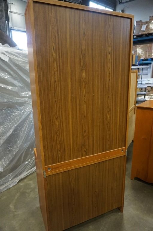 TEAK FINISH 2 PIECE DISPLAY CABINET SHELF WITH 3 DRAWERS