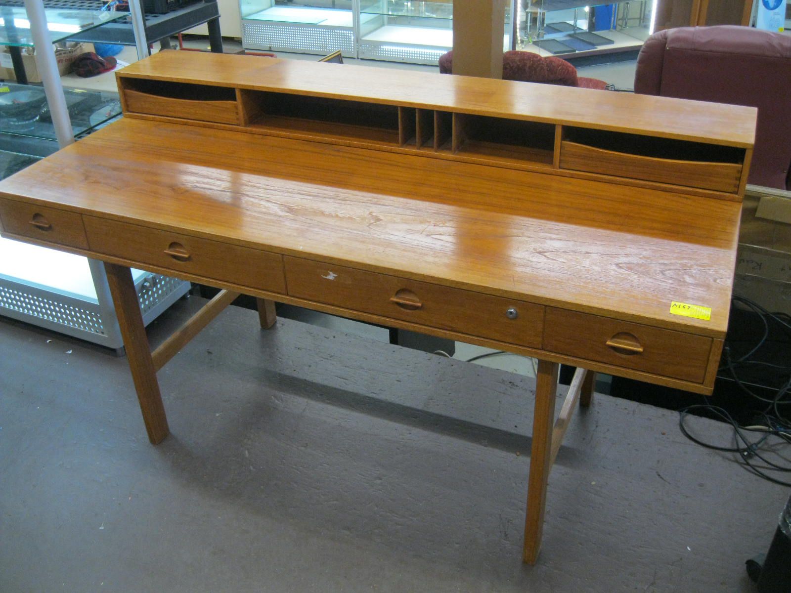 TEAK MID CENTURY MODERN DESK W/FLIP TOP & 4 DRAWERS