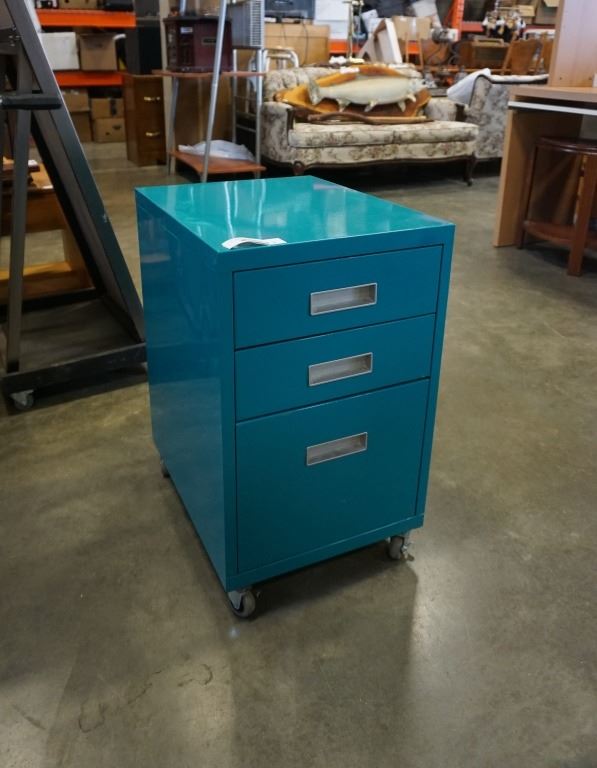 TEAL METAL 3 DRAWER ROLLING
