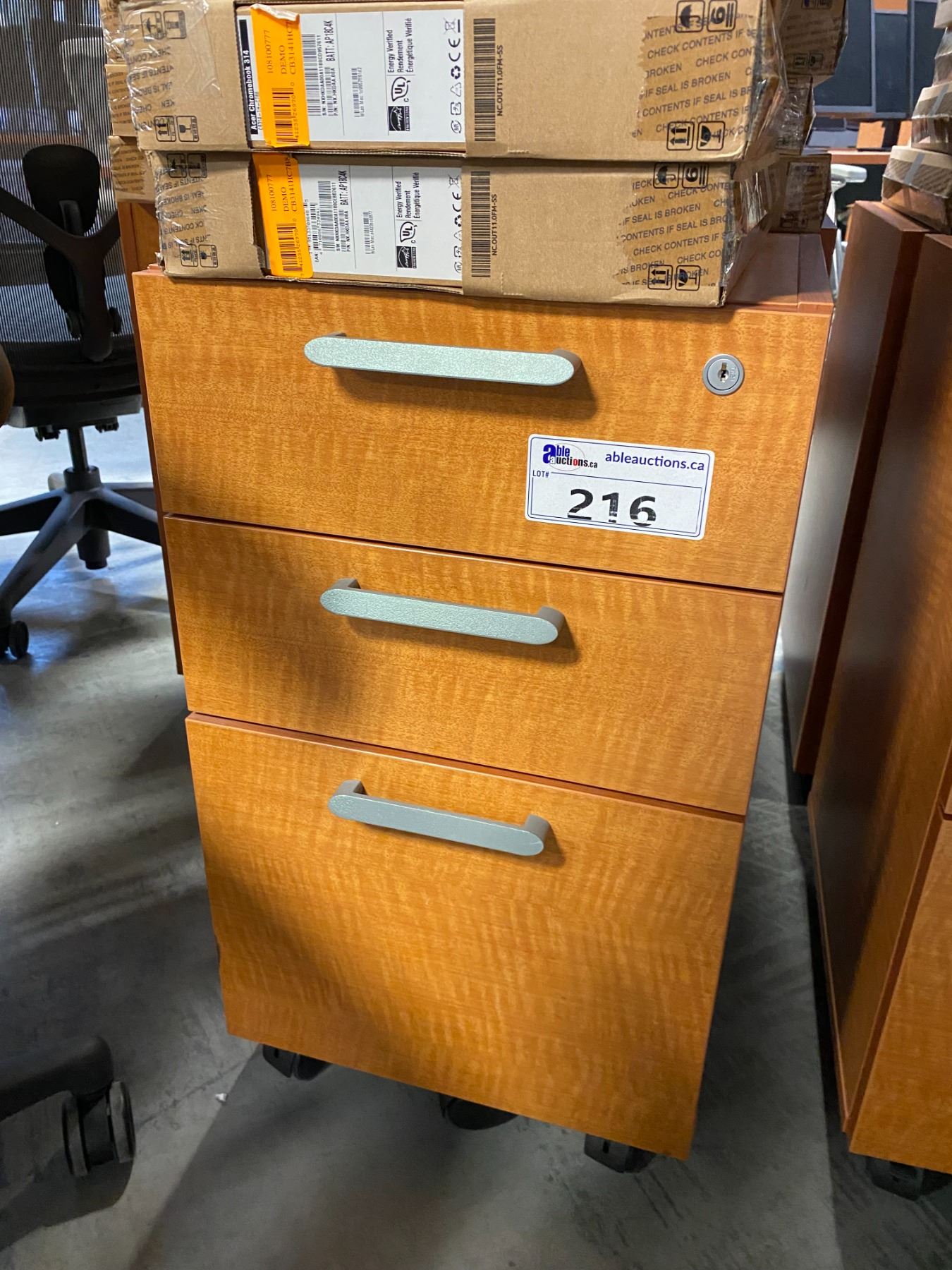 TEKNION MAPLE 3 DRAWER MOBILE PEDESTAL