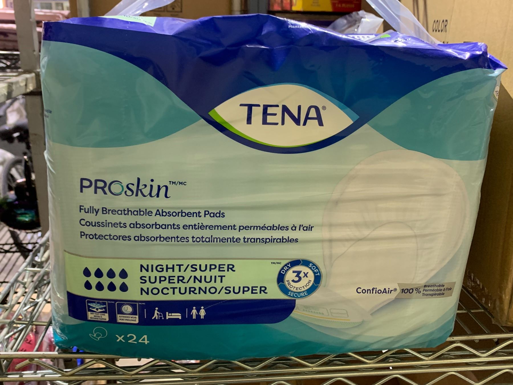 TENA PADS AND COLLAPSIBLE SHOPPING CART