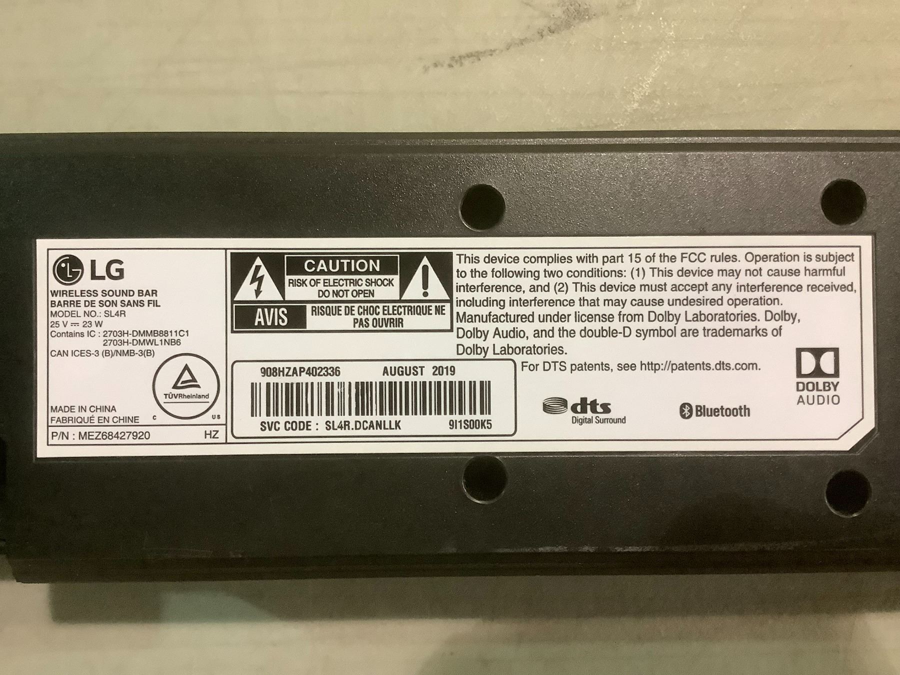 *TESTED WORKING* LG SOUND BAR NO POWER CORD MODEL SL4R