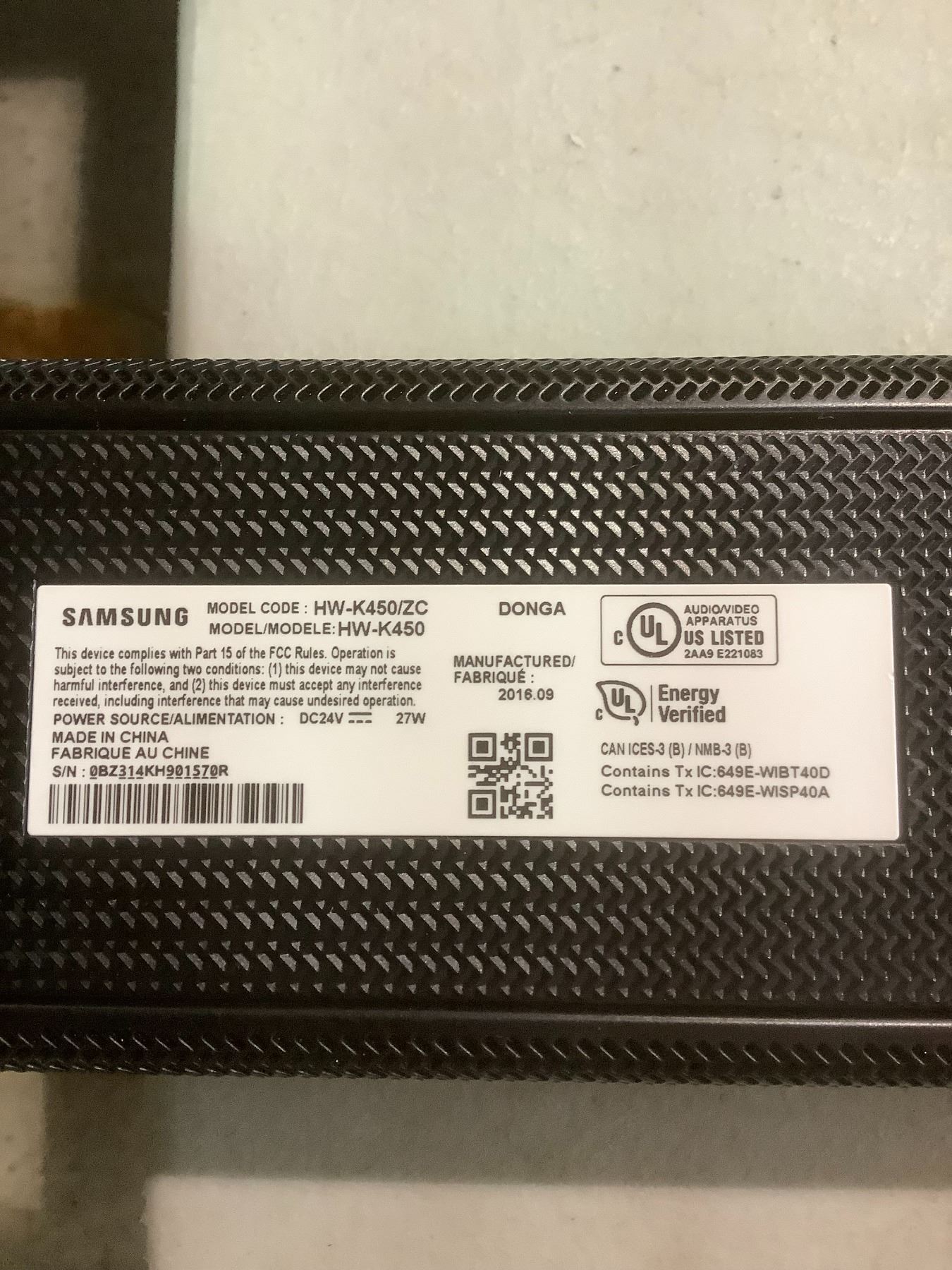 *TESTED WORKING* SAMSUNG SOUND BAR WITH POWER CORD MODEL HW-K450/ZC