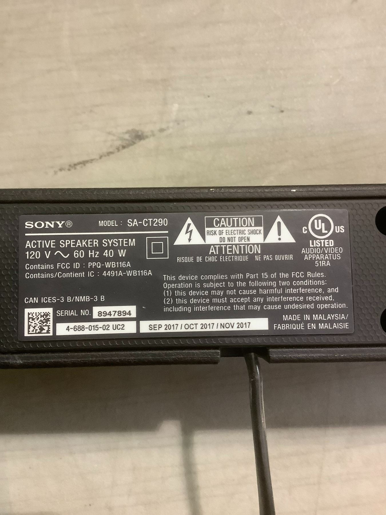 *TESTED WORKING* SONY SOUND BAR WITH POWER CORD MODEL SA-CT290
