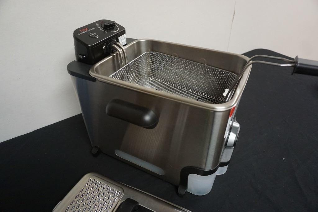 TFAL ULTIMATE EZ CLEAN DEEP FRYER - TESTED WORKING, RETAIL $129.96, COSMETIC DAMAGE ON BACK OF UNIT
