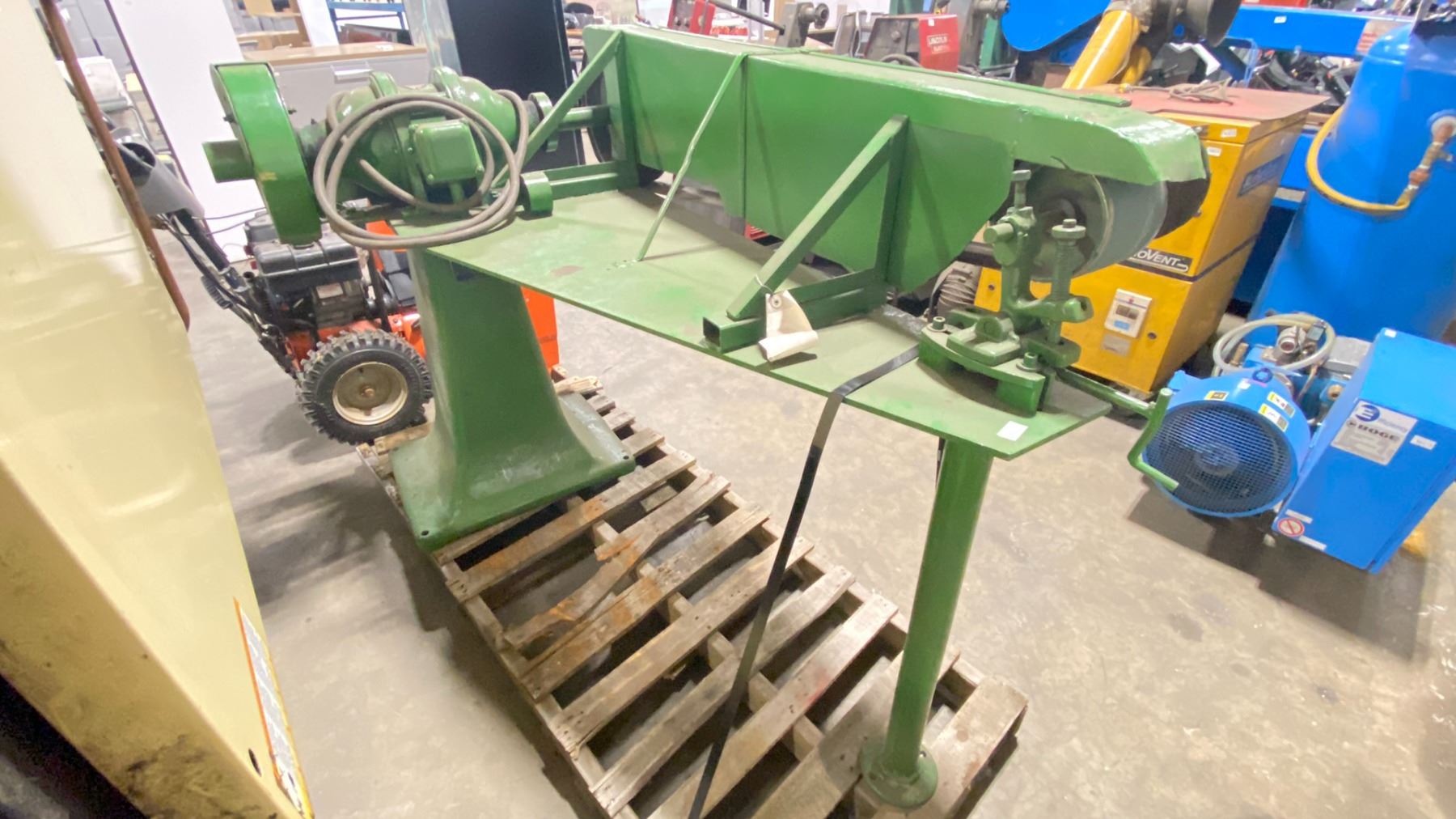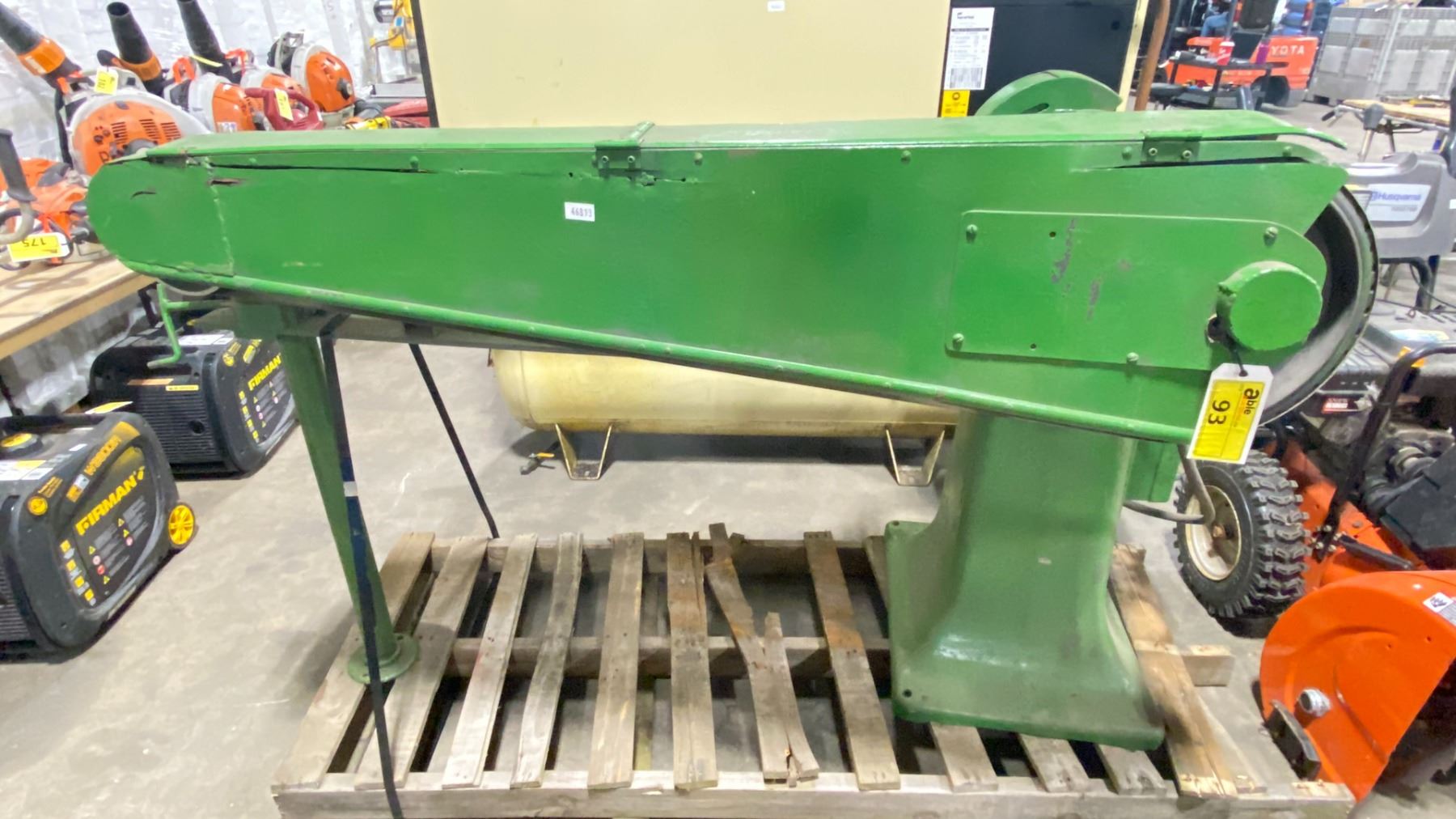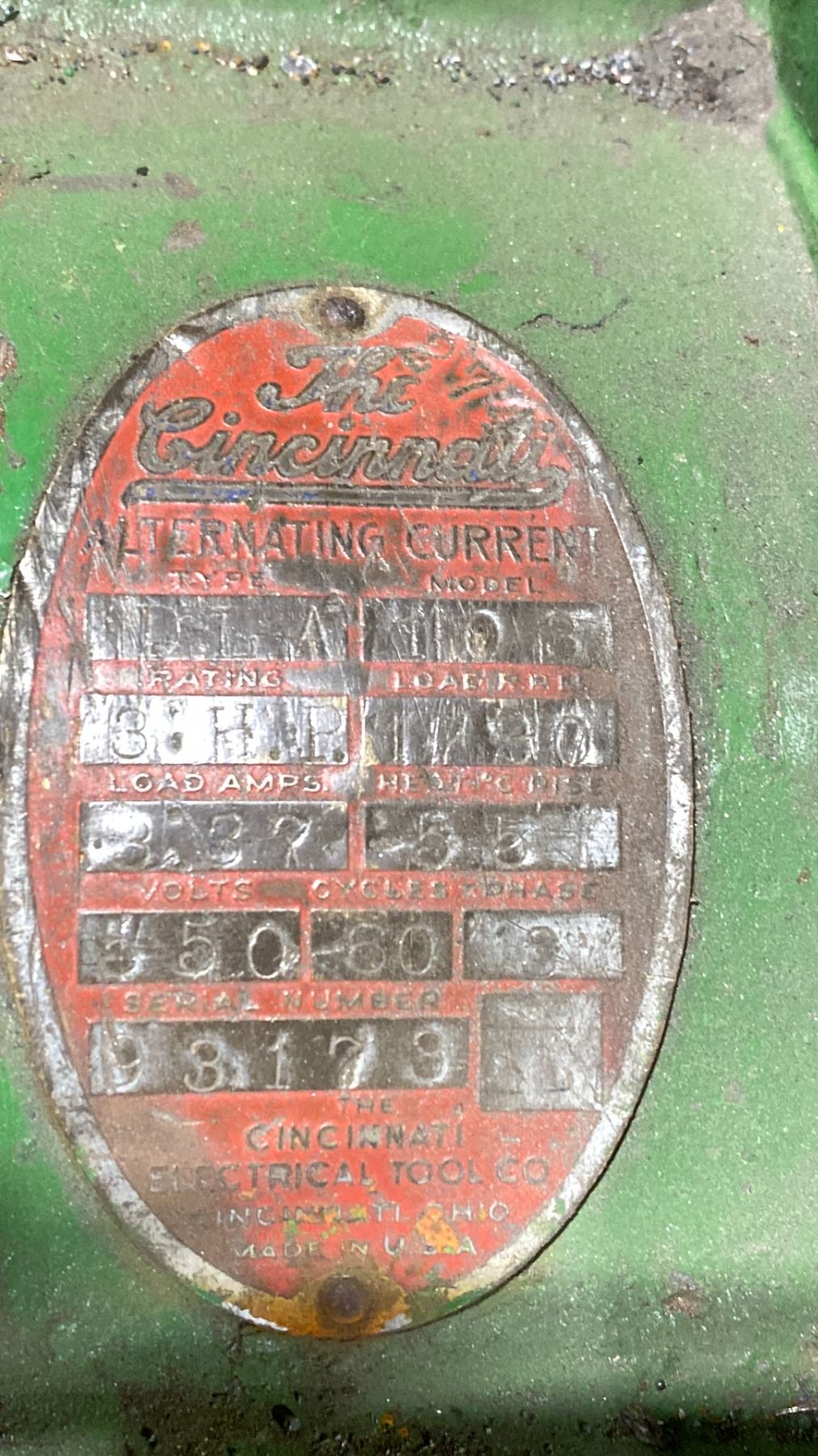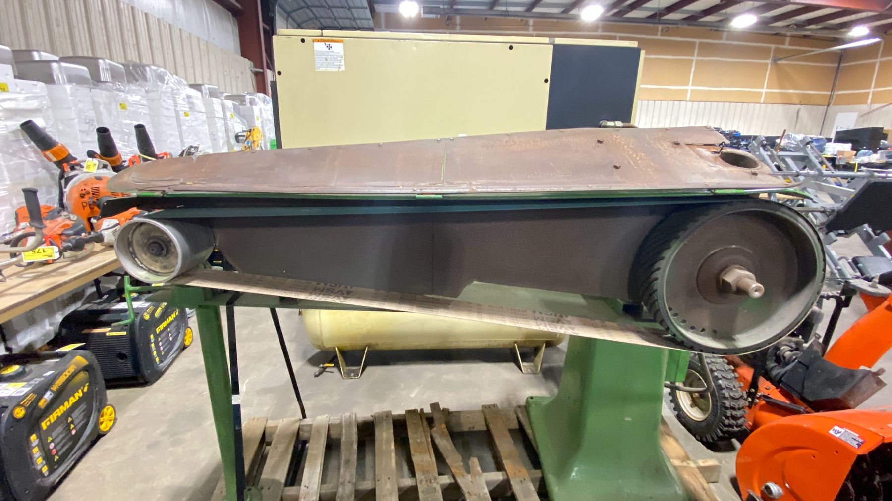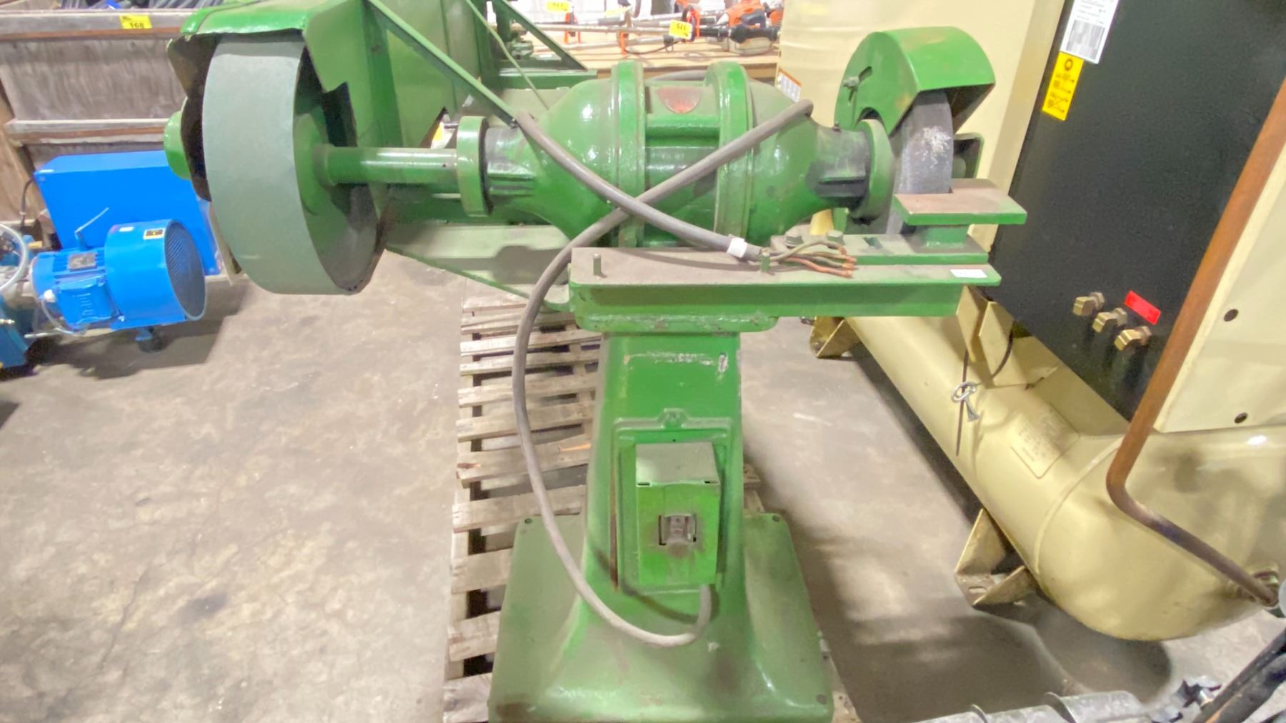 THE CINCINNATI DLA 103 GREEN HEAVY DUTY ELECTRIC INDUSTRIAL DUAL BELT / DISC SANDER ON PEDESTAL