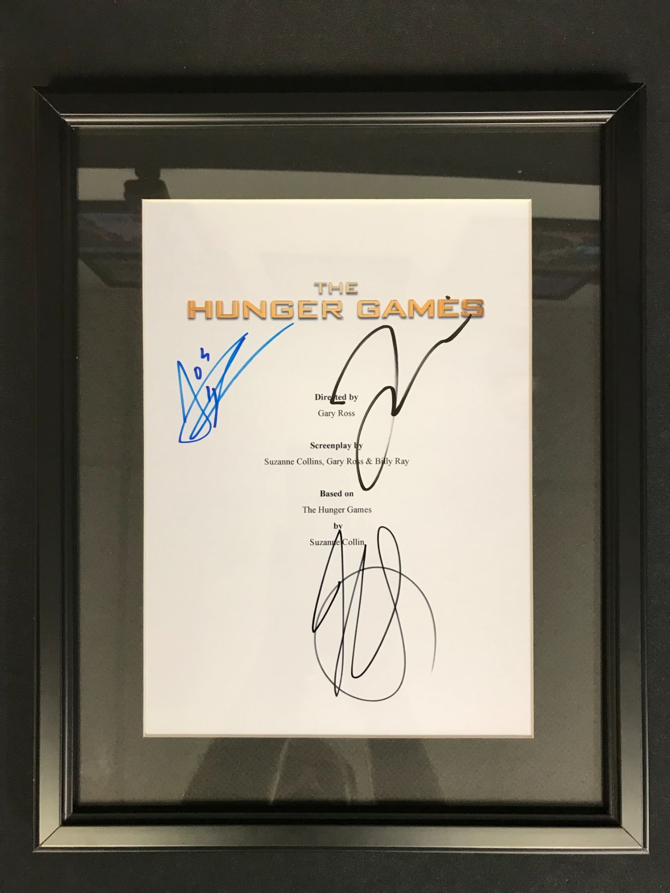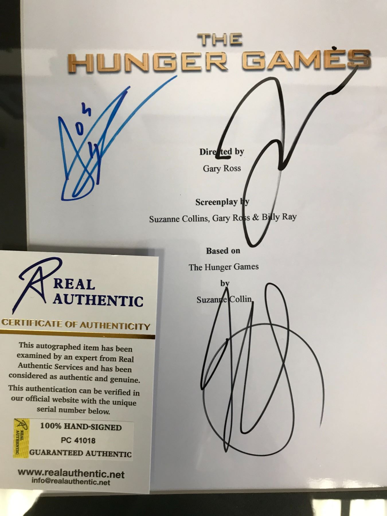 THE HUNGER GAMES CAST SIGNED SCRIPT COVER (RA COA)