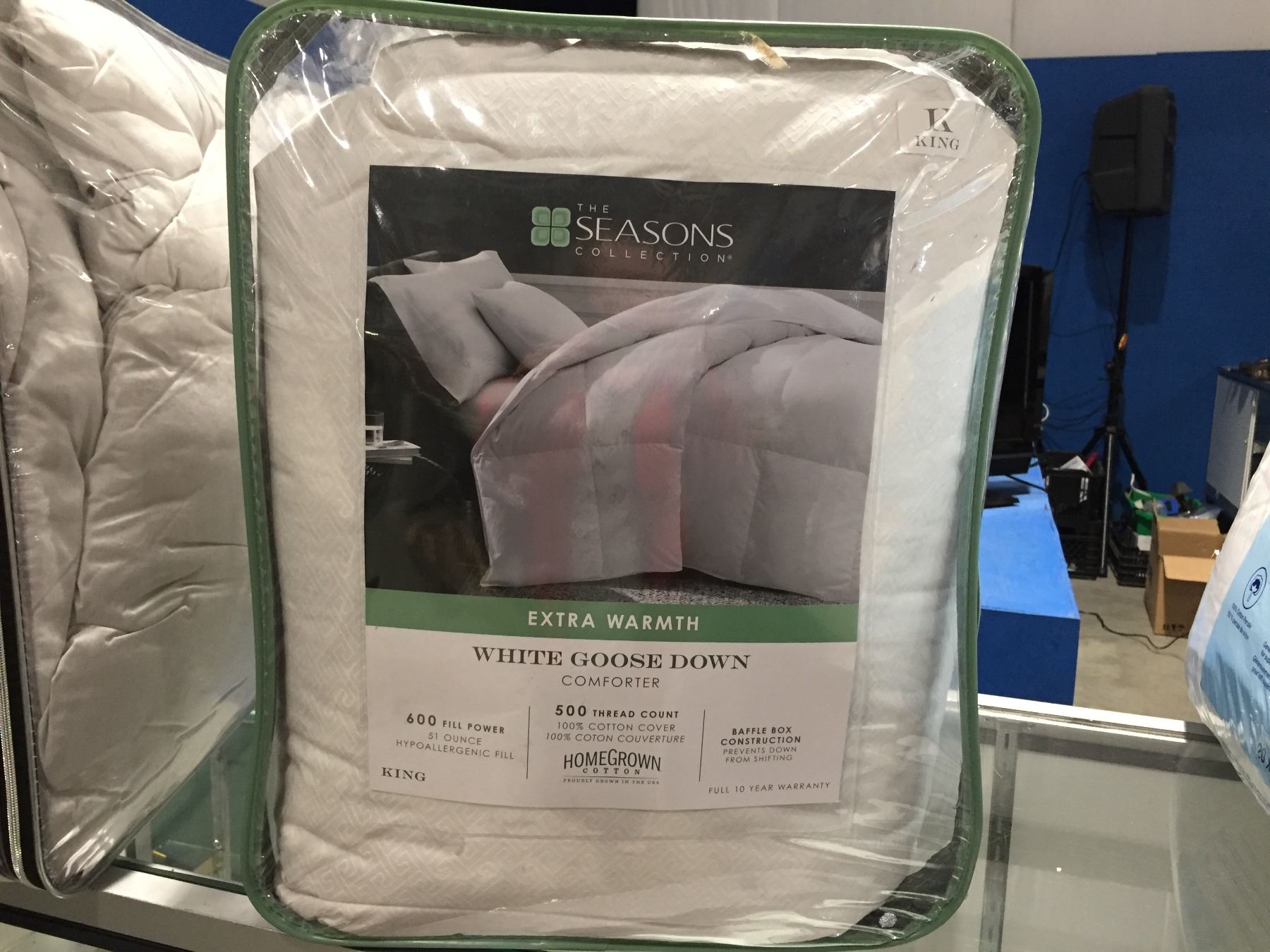 THE SEASONS COLLECTION EXTRA WARMTH WHITE GOOSE DOWN COMFORTER - 600 FILL POWER/500 THREAD COUNT/100% COTTON COVER/BAFFLE BOX CONSTRUCTION - PREVENTS DOWN FROM SHIFTING - KING SIZE