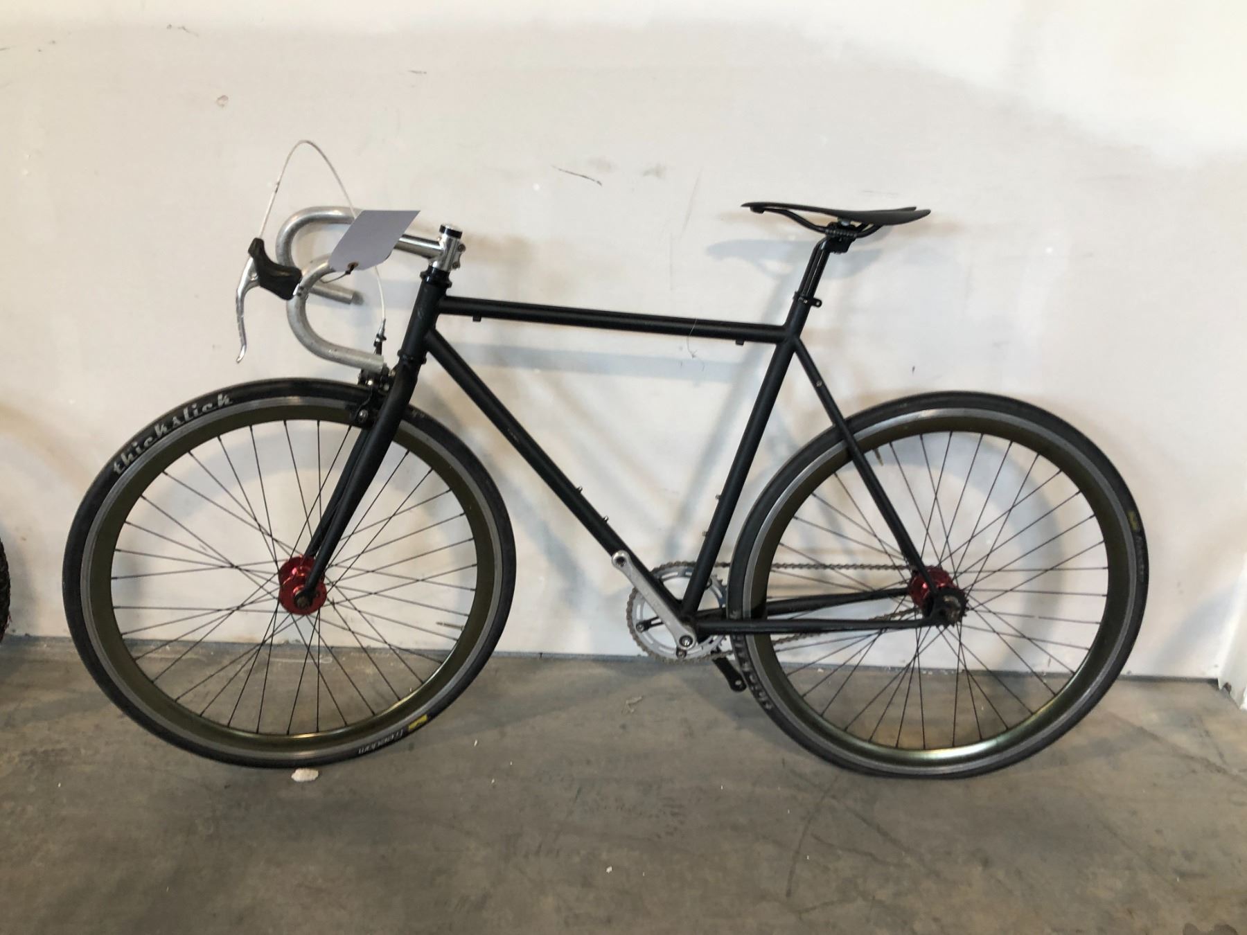 THICK SLICK BLACK FRONT SUSPENSION ROAD BIKE - NO PEDALS SINGLE SPEED