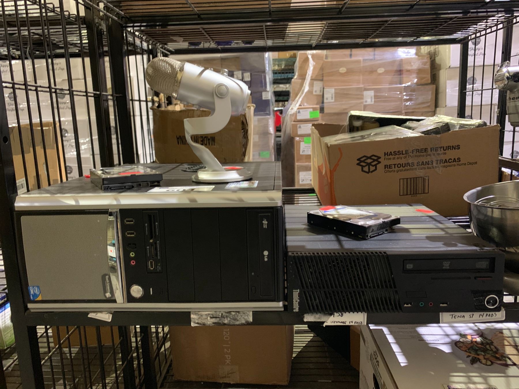 THINK CENTER AND LG COMPUTER TOWERS AND BLUE MICROPHONE