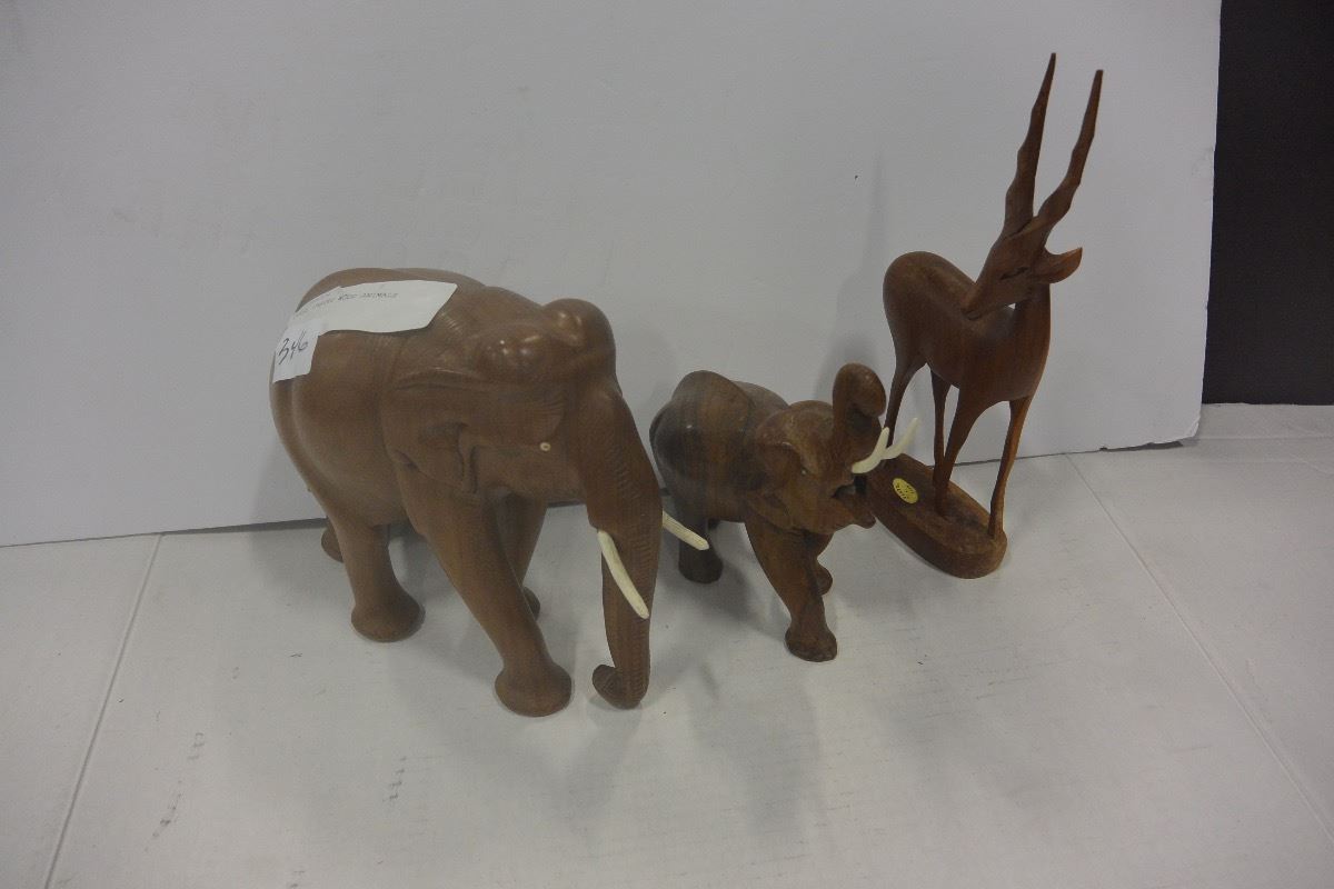 THREE CARVED WOOD ANIMALS