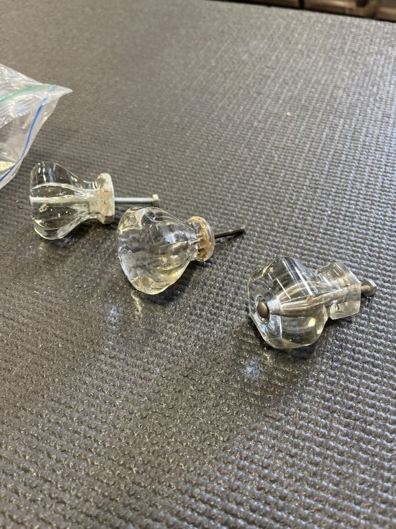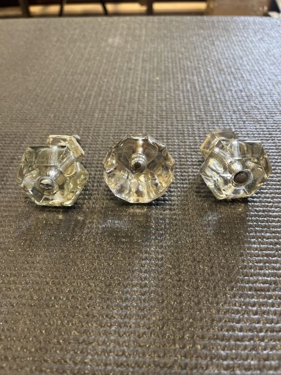 THREE LARGE ANTIQUE CRYSTAL DRAWER PULLS
