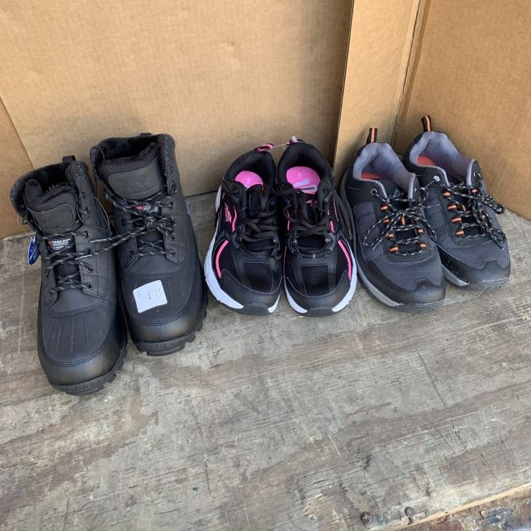 THREE PAIRS OF NEW SIZE 9 FOOTWEAR RUNNING SHOES AND BOOTS RETAIL $120+