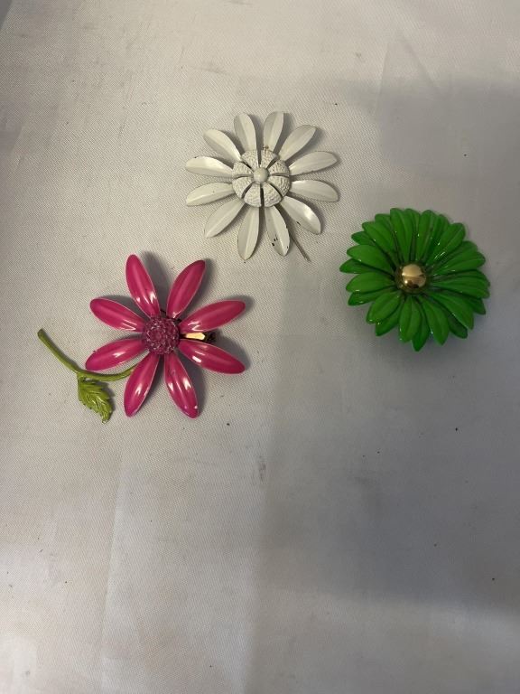 THREE RETRO ENAMEL FLOWER BROOCHES