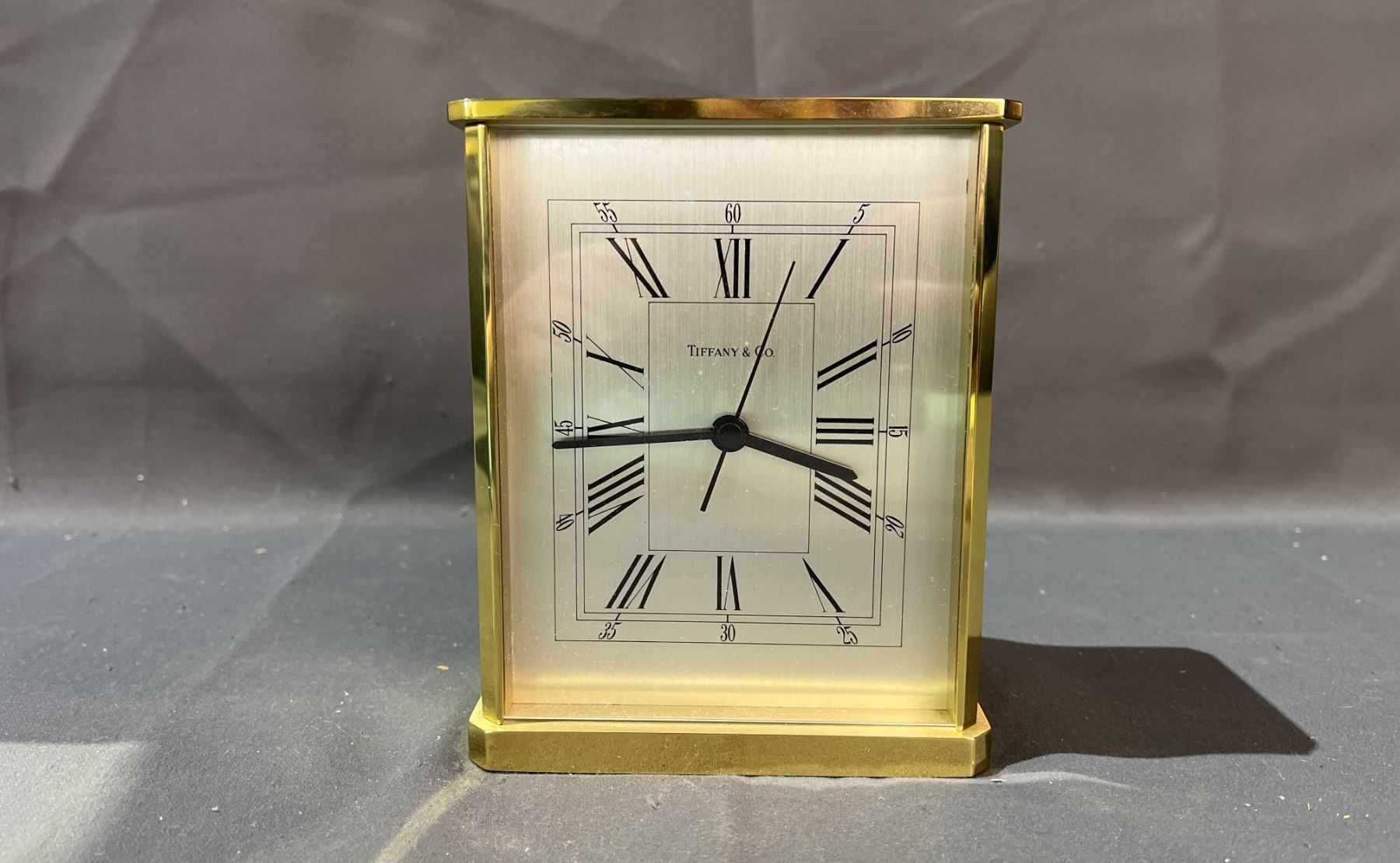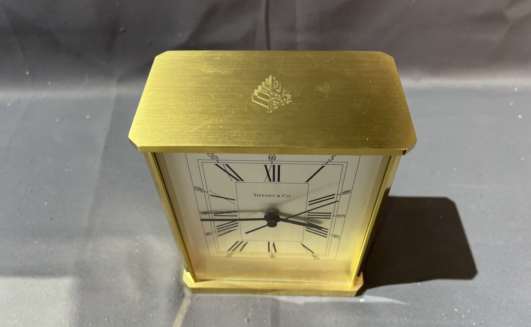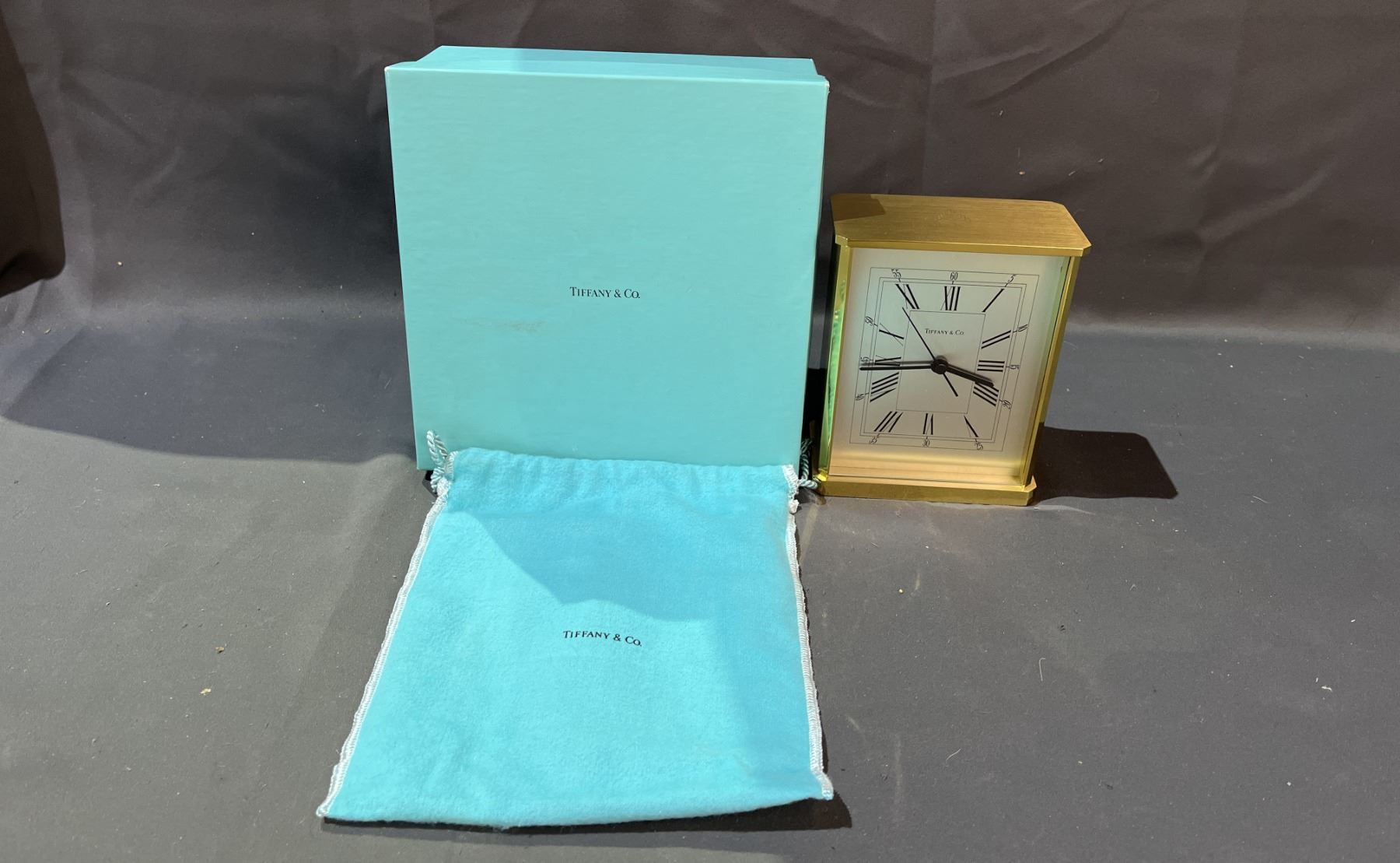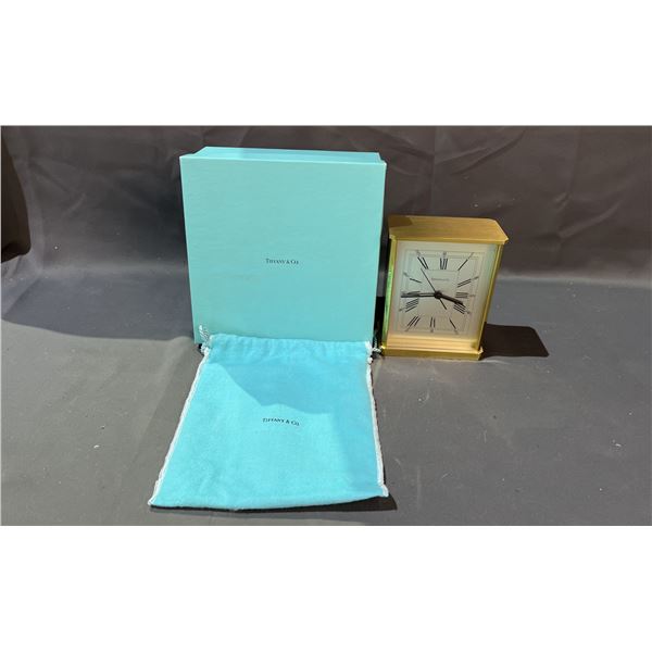 TIFFANY & CO BRASS MANTLE CLOCK WITH BOX