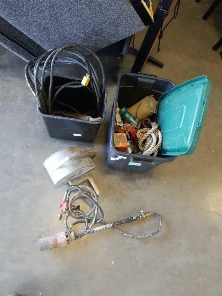 TIGER TORCH, EXTENSION CORD, JIGSAW AND TOTE OF TOOLS