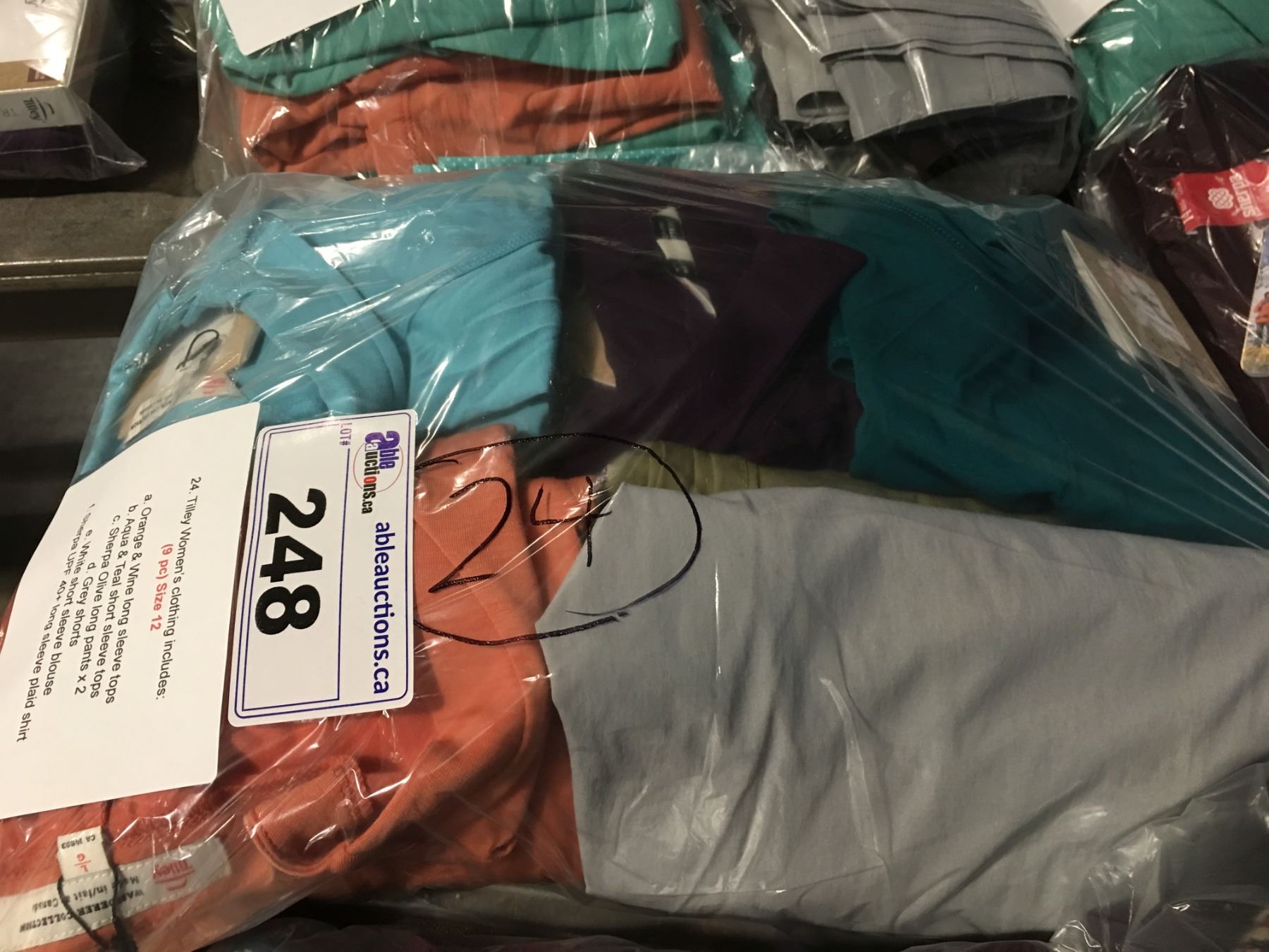 TILLEY WOMEN'S ASSTD CLOTHING (9 PC) (SIZE 12) INCLUDES: 3 X LONG SLEEVE TOPS/3 X SHORT SLEEVE TOPS/SHORTS & 2 X LONG PANTS