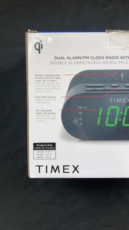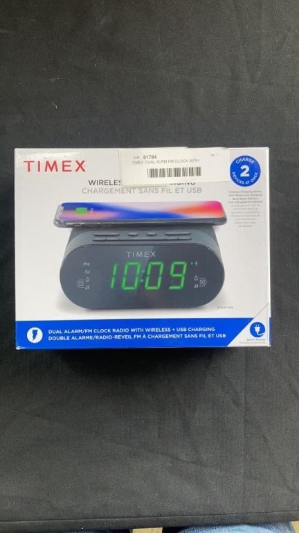TIMEX DUAL ALRM FM CLOCK WITH WIRELESS AND USB CHARGING - TESTED WORKING