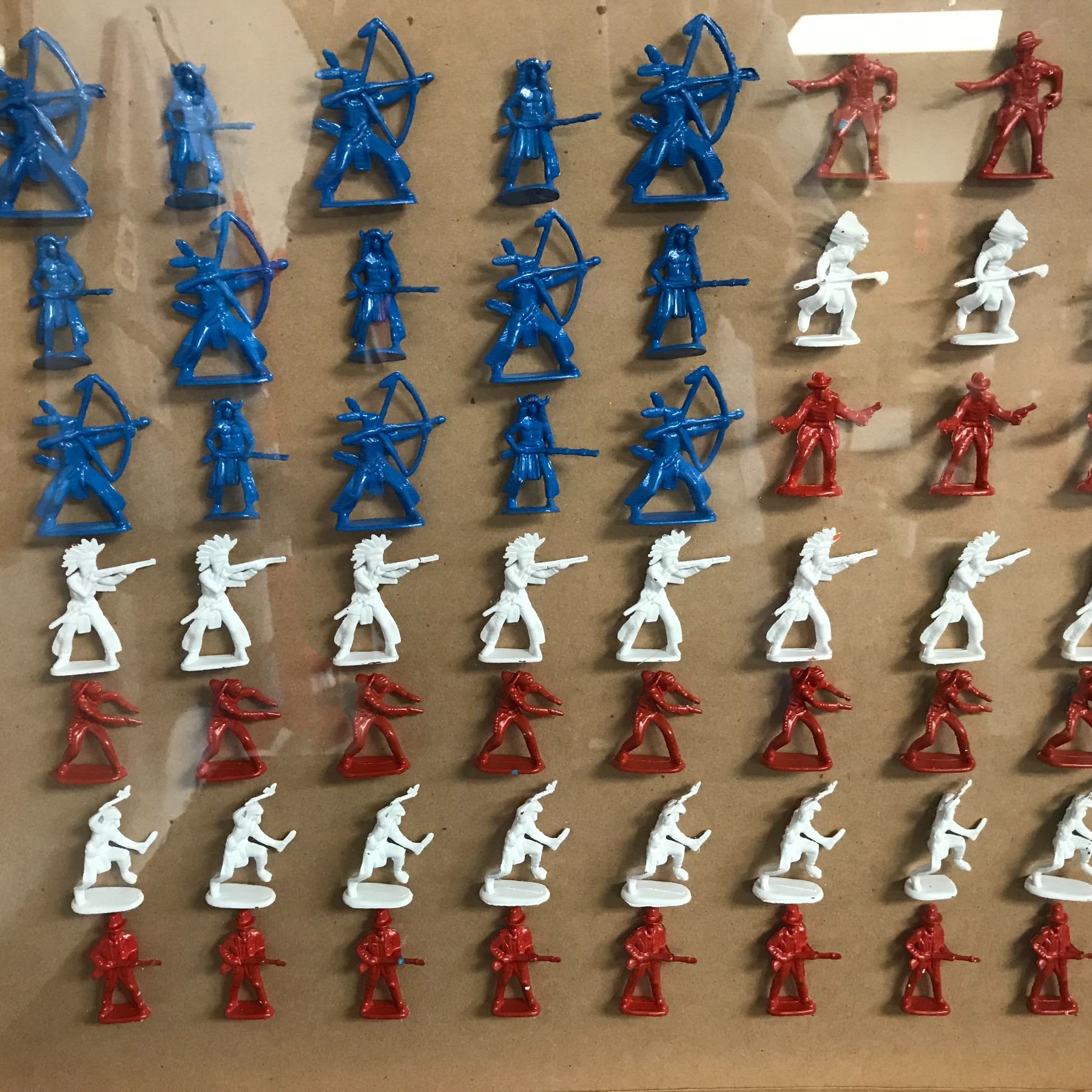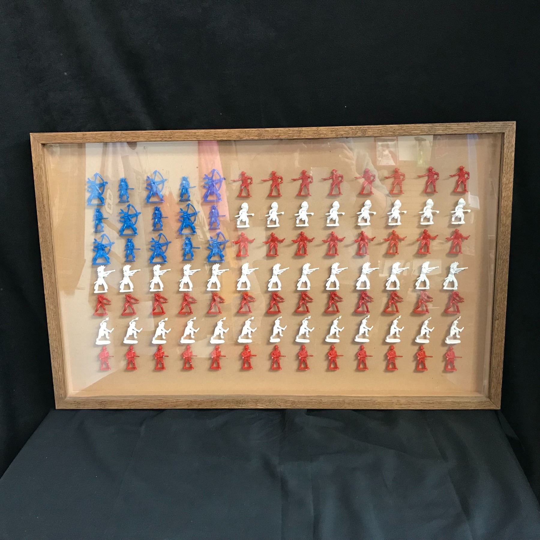 TIMMEE PLASTIC ARMY MEN RED WHITE & BLUE SOLDIER FIGURES (AMERICAN FLAG SHADOW BOX)