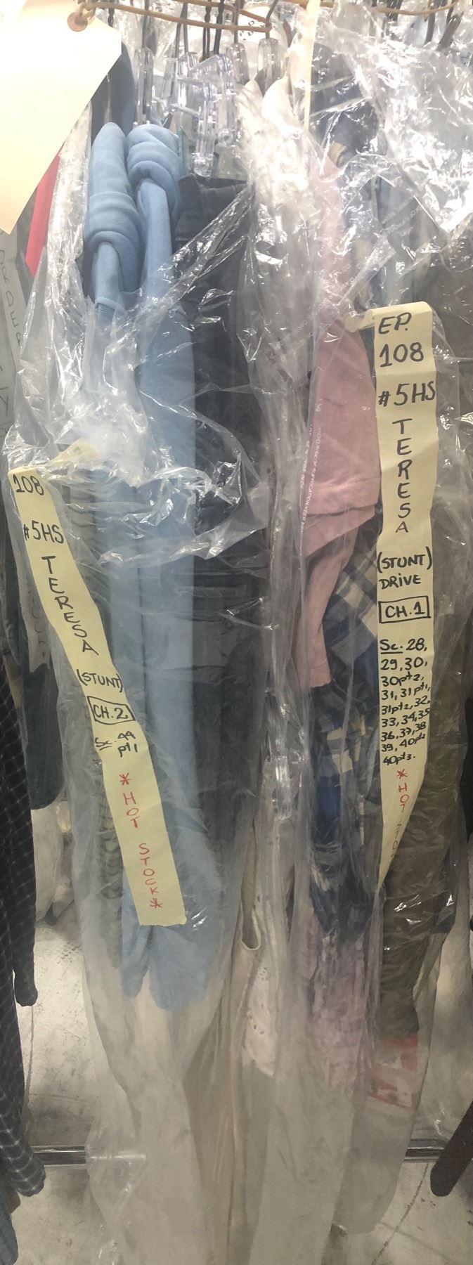 TMC S1 - Ep 108 - #5H Hero & stunt outfit - includes "H&M" blue hoodies / "All Saints" jeans / jewelry / necklaces / rings / bra / belts etc (approx 30 pcs.)