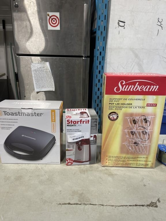TOASTMASTER SABNDWHICH GRILL, ELECTRIC CAN OPENER AND PLATE RACK
