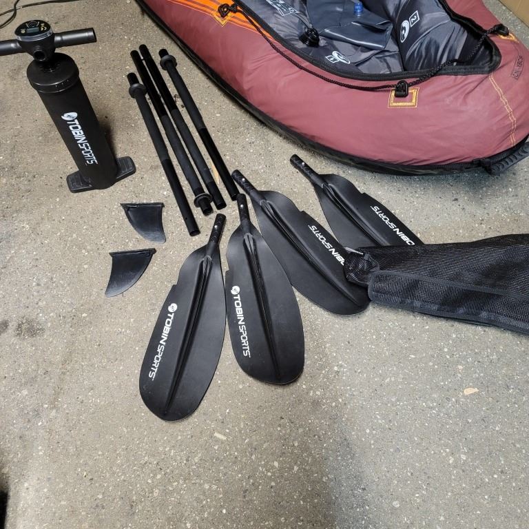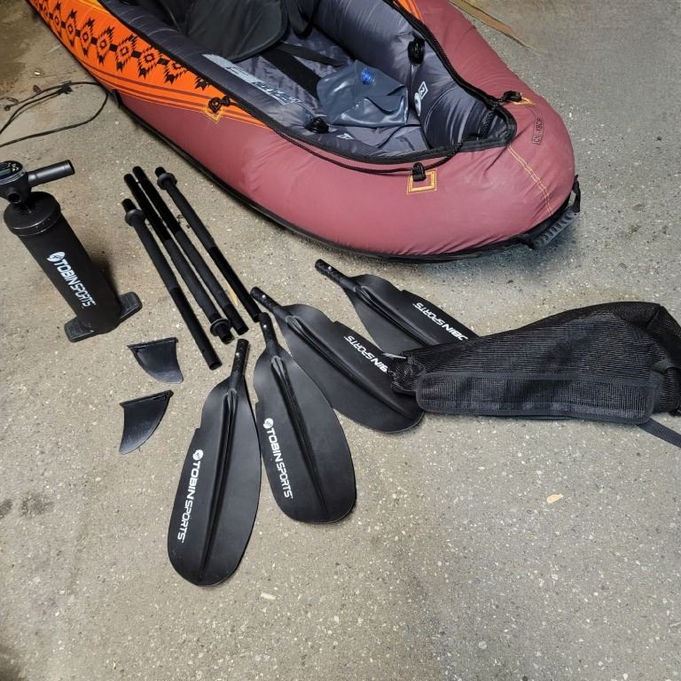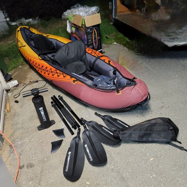 TOBIN SPORTS WAVEBREAK 2 SEATER KAYAK WITH FINS, PADDLES,SEATS AND PUMP