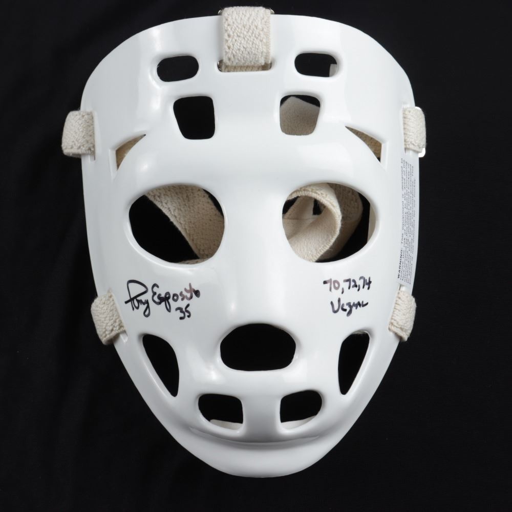 TONY ESPOSITO AUTOGRAPHED GOALIE MASK W/70,72,74 VEZINA INSCRIPTION (SCHWARTZ)