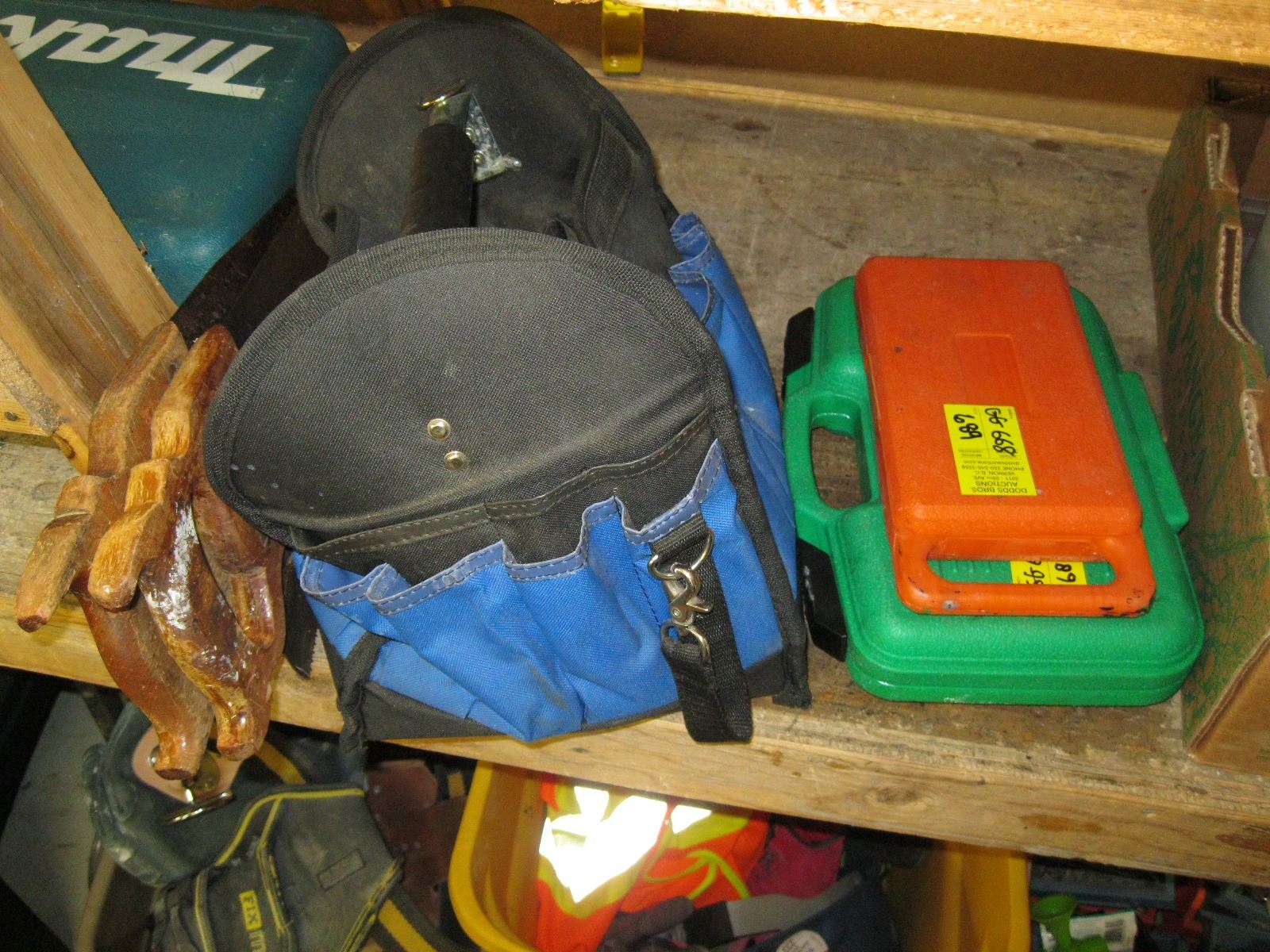 TOOLBAG, 2 HANDSAWS & 2 SM CASED TOOL SETS