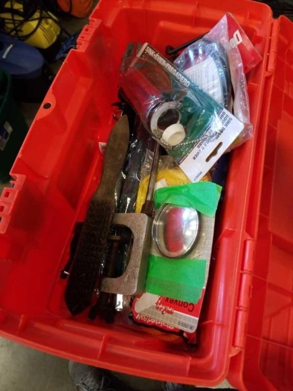 TOOLBOX OF PACKAGED ITEMS WITH 90FT AIR HOSE