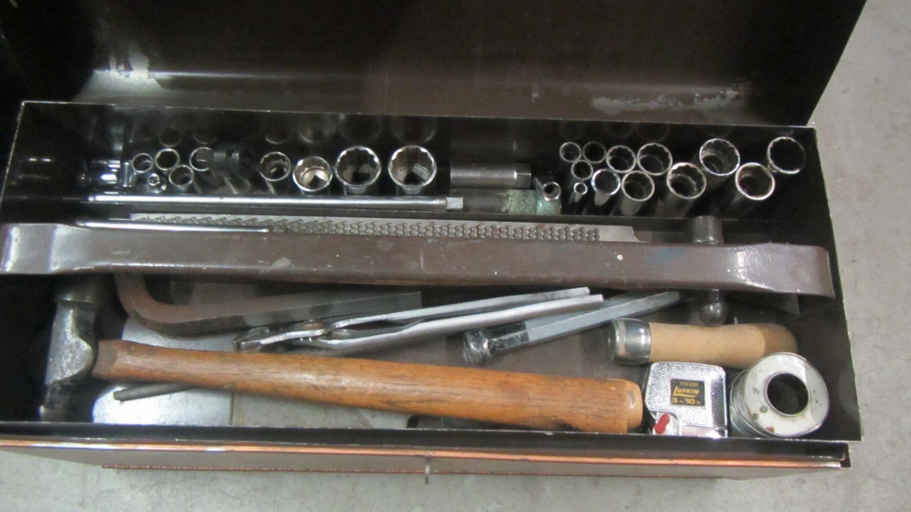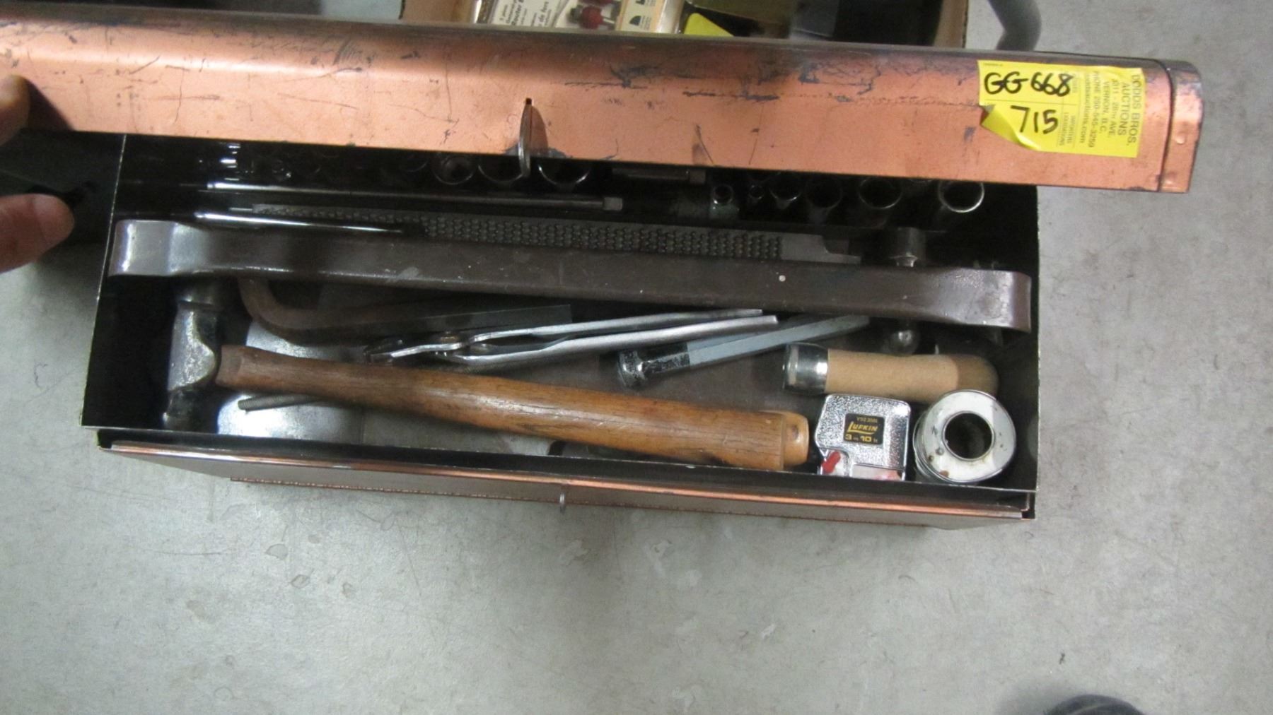 TOOLBOX W/ASST CONTENTS, SOCKETS, HAMMERS, WRENCHES, ETC.