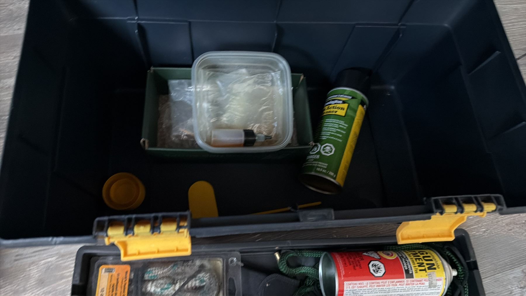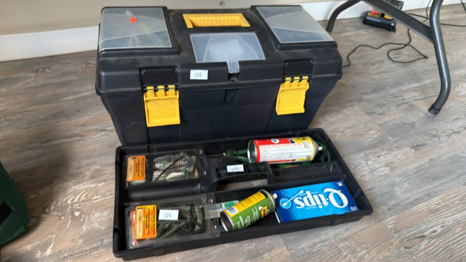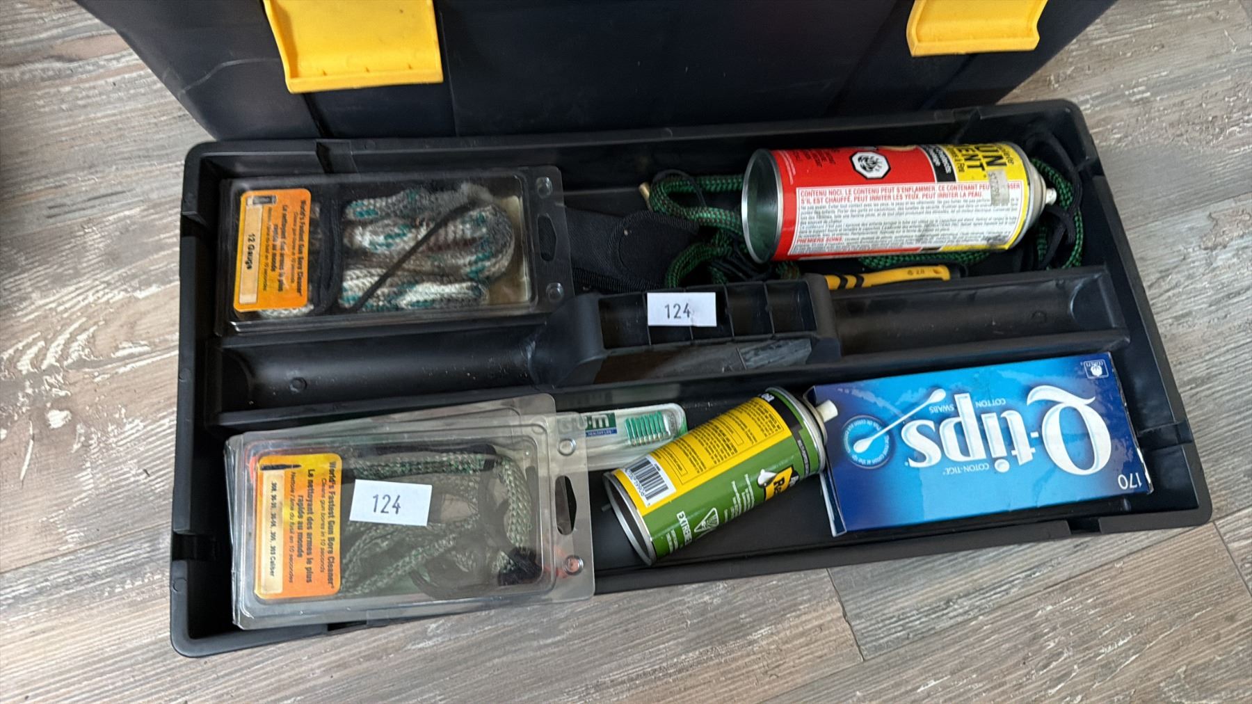TOOLBOX WITH ASSORTED GUN CLEANING SUPPLY CONTENTS