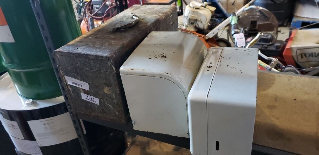 TOOLBOX WITH CONTENTS AND 2 PAPER TOWEL DISPENSERS