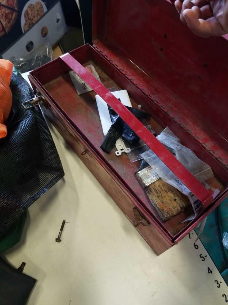 TOOLBOX WITH CONTENTS FISHING TUBE COVER, INFLATEABLE CHAIR