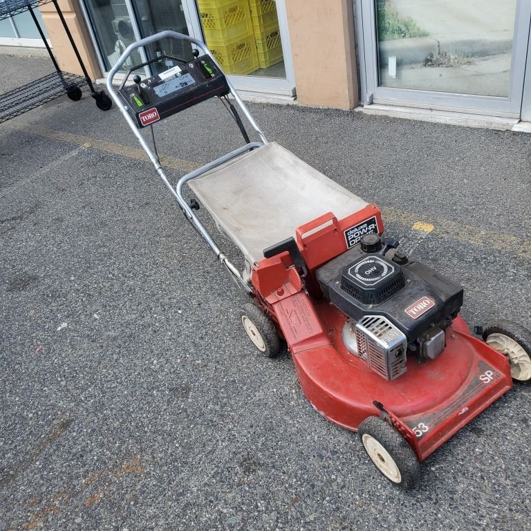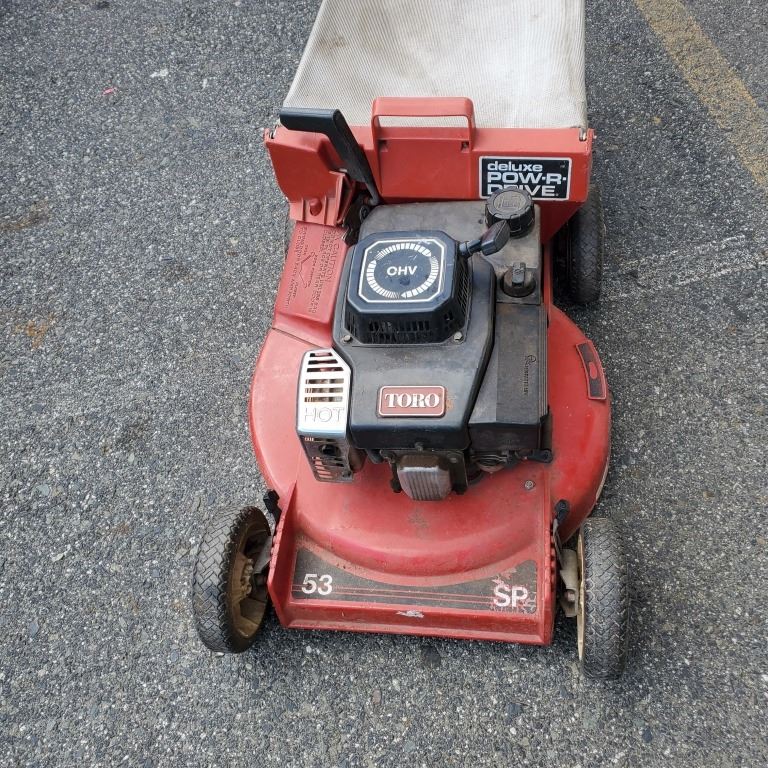 TORO DELUXE POWER DRIVE LAWN MOWER WORKING WITH CATCHER