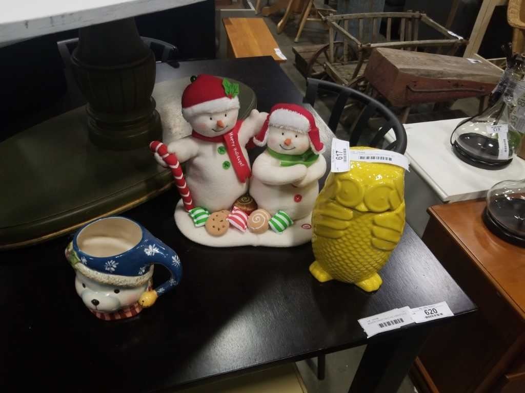 TORRE AND TOGUS, OWL COOKIE JAR, MUSICAL SNOW COUPLE, AND BEAR MUG