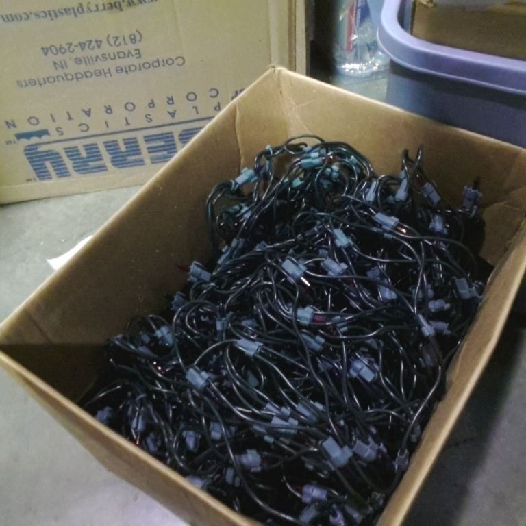 TOTE AND 2 BOXES OF CHRISTMAS LIGHTS