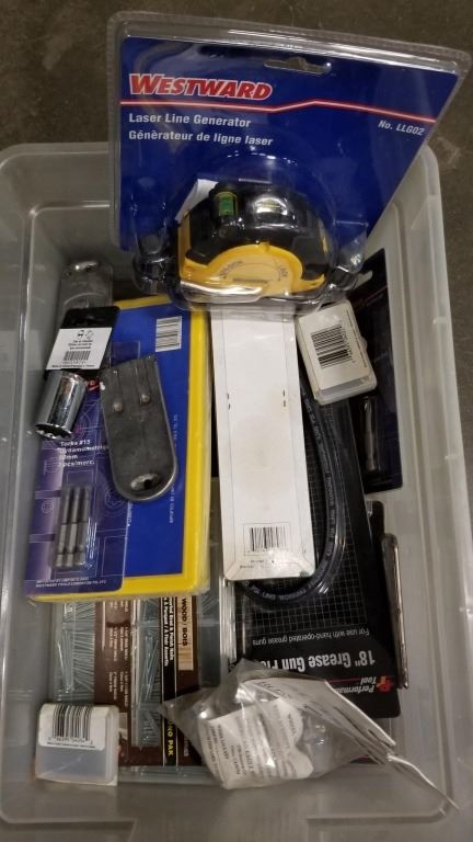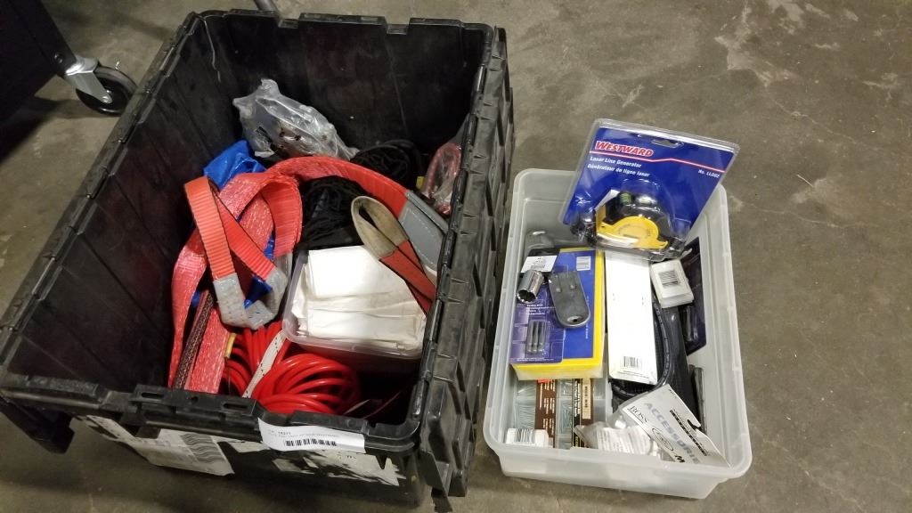 TOTE AND TRAY OF NEW WESTWARD ITEMS AND STRAPS
