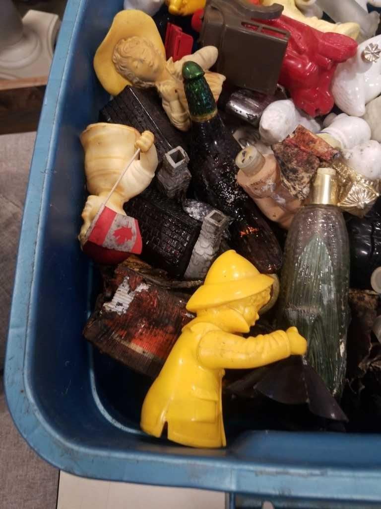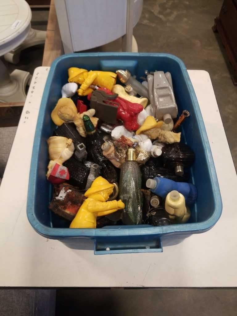 TOTE OF ASSORTED AVON GLASS AND PERFUME WARES, WILL NEED A CLEANING