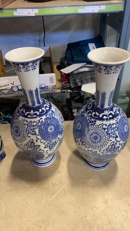 TOTE OF BLUE AND WHITE EASTERN VASES, WOOD CARVED DOLPHIN AND FIGURE, COLLECTABLES