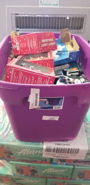 TOTE OF CHRISTMAS DECOR AND ORNAMENTS