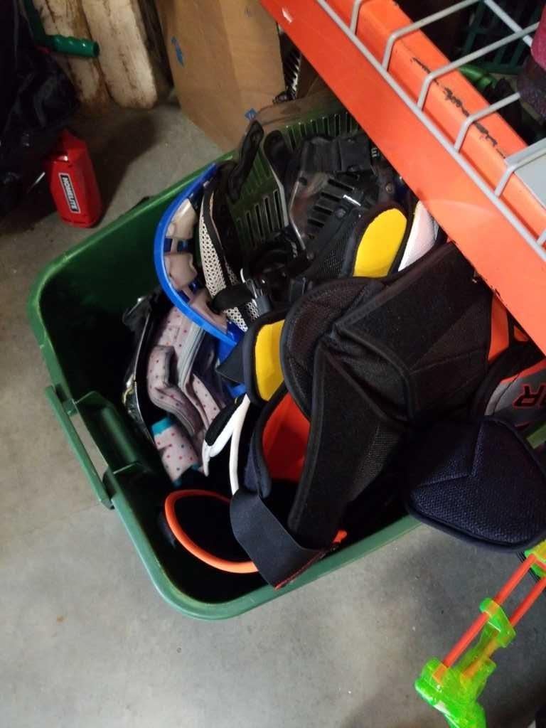 TOTE OF DIRTBIKE AND OTHER CHEST PROTECTORS, BACKPACKS