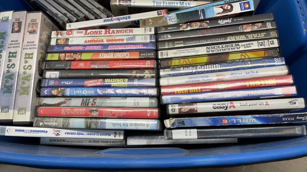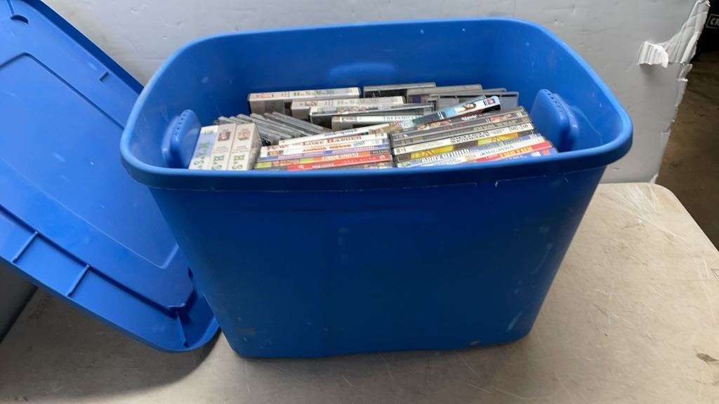 TOTE OF DVDS AND CDS