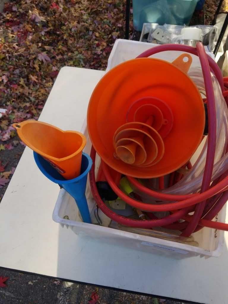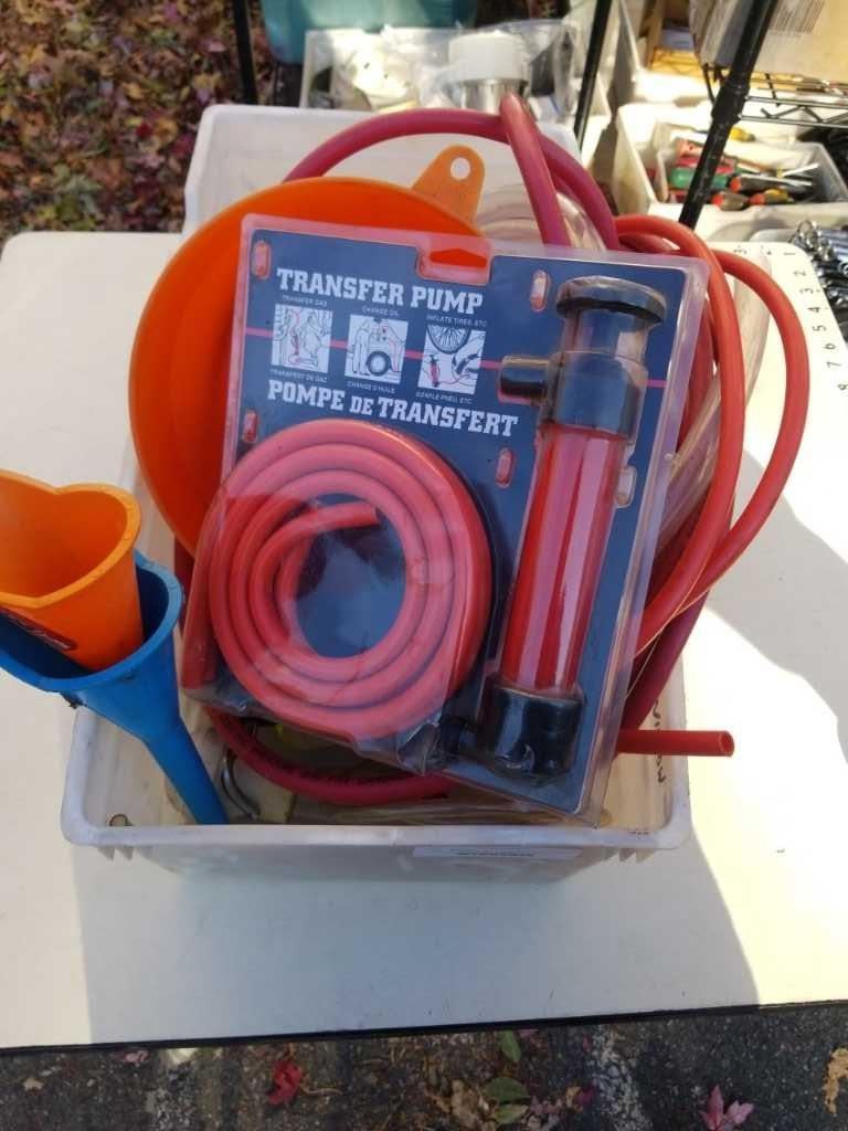 TOTE OF FUNNELS AND TRANSFER PUMPS