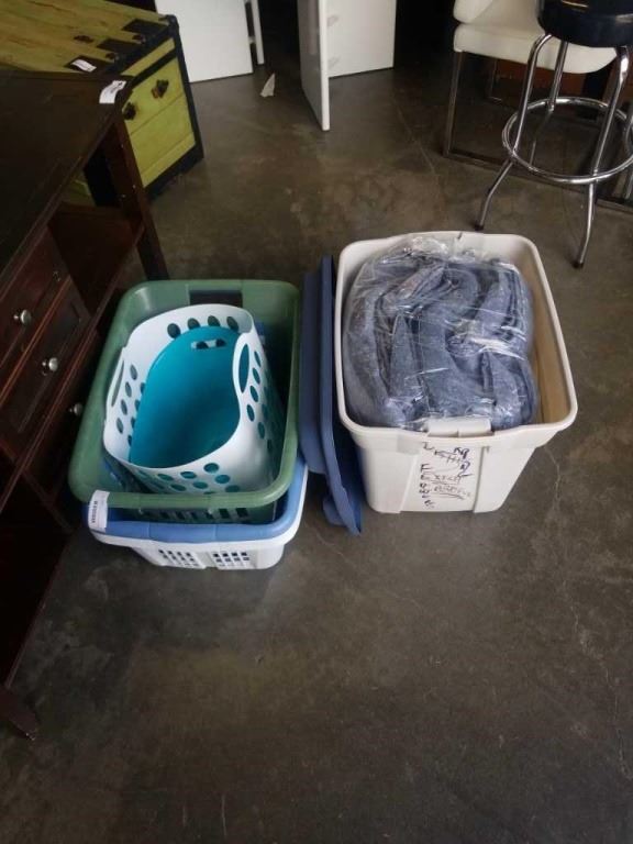 TOTE OF MOVING BLANKETS AND HAMPERS