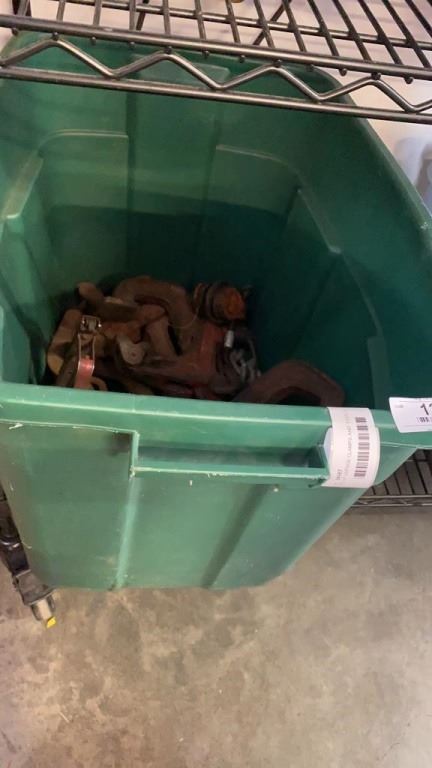 TOTE OF VINTAGE CLAMPS AND TOOLS