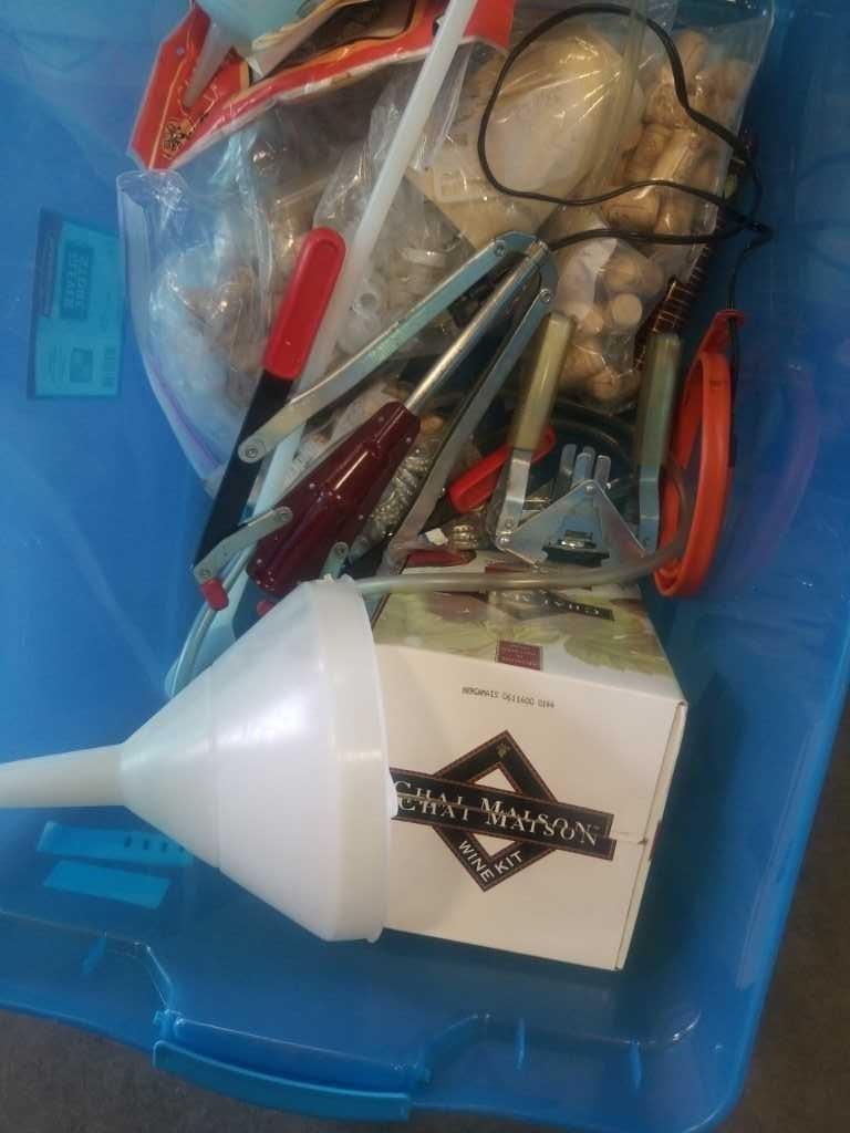 TOTE OF WINE MAKING SUPPLIES