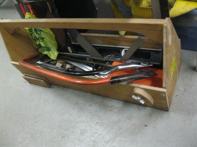TOTE W/ASST. TOOLS, SAWS, SQUARES, DRILLS, ETC.